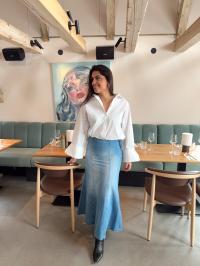 Laget av: 70% bomull, 27% polyamid, 3% elastan