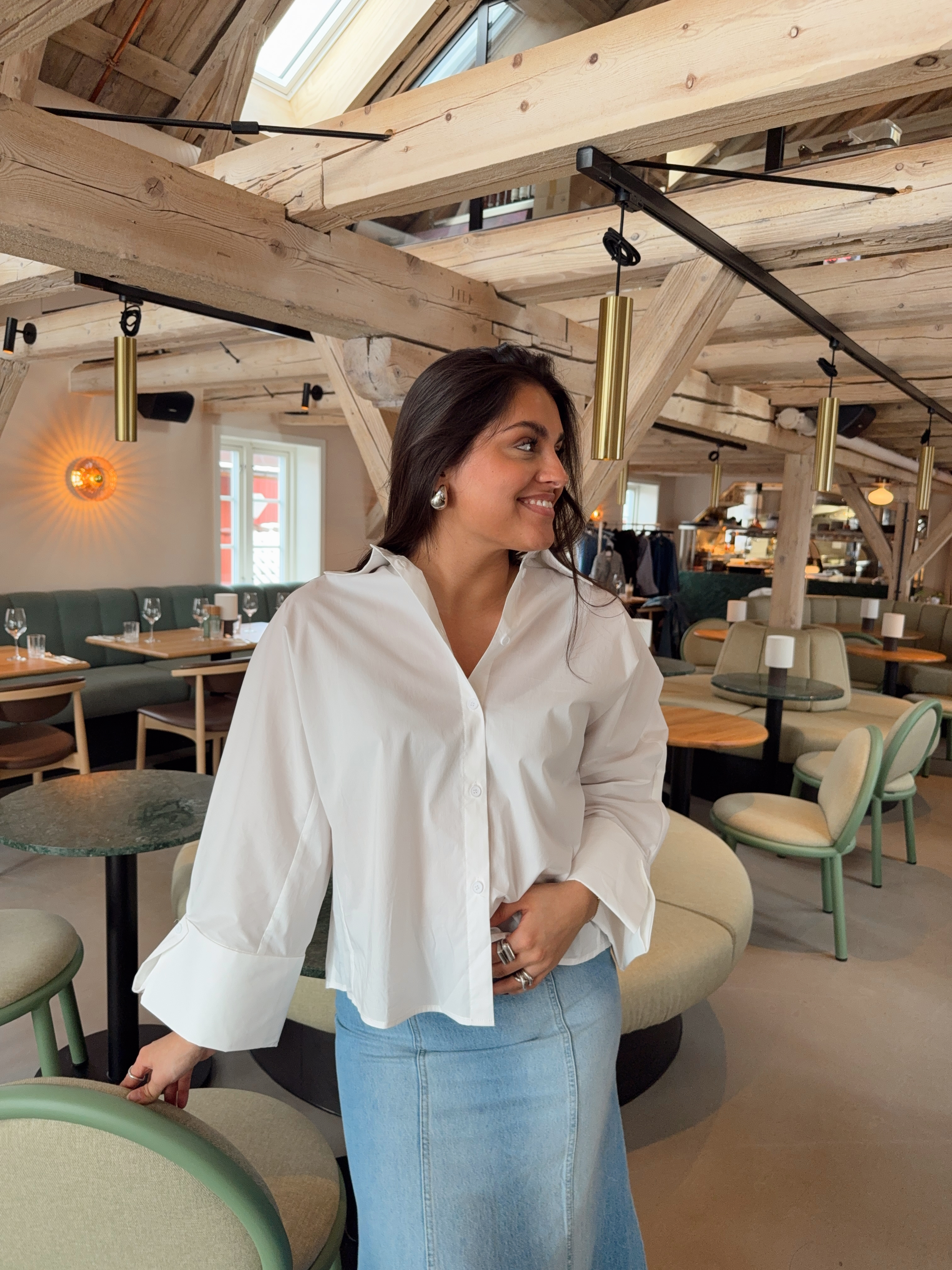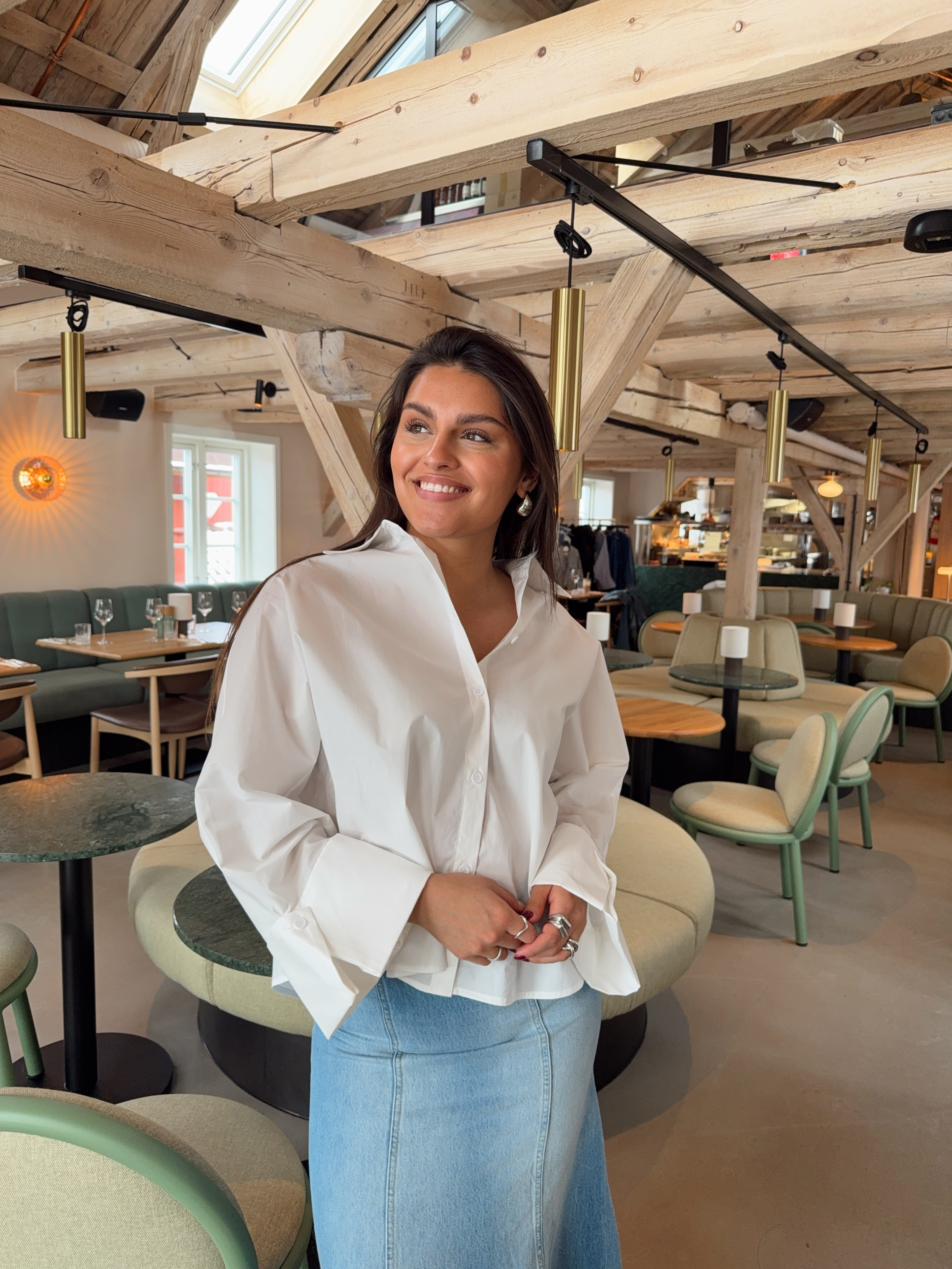 "Atari Shirt" fra Iben. Slipp stilen løs med Iben sin klassiske hvite skjorte, med brede mansjetter og et snev av attitude. Med sitt dristige design og lett avkortede lengde er Atari Shirt MA et perfekt statement-plagg til enhver anledning.