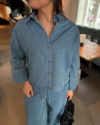 "Atari Denim Shirt" fra Iben. Denne skjorten er en tøff denimskjorte med en liten twist. Skjorten har en oversized fasong og kommer i en mellomblå vask. Skjorten har klassisk krage og lukkes med knepping i front. Den har store og vide ermer med oppbrett som gir skjorten det lille ekstra!