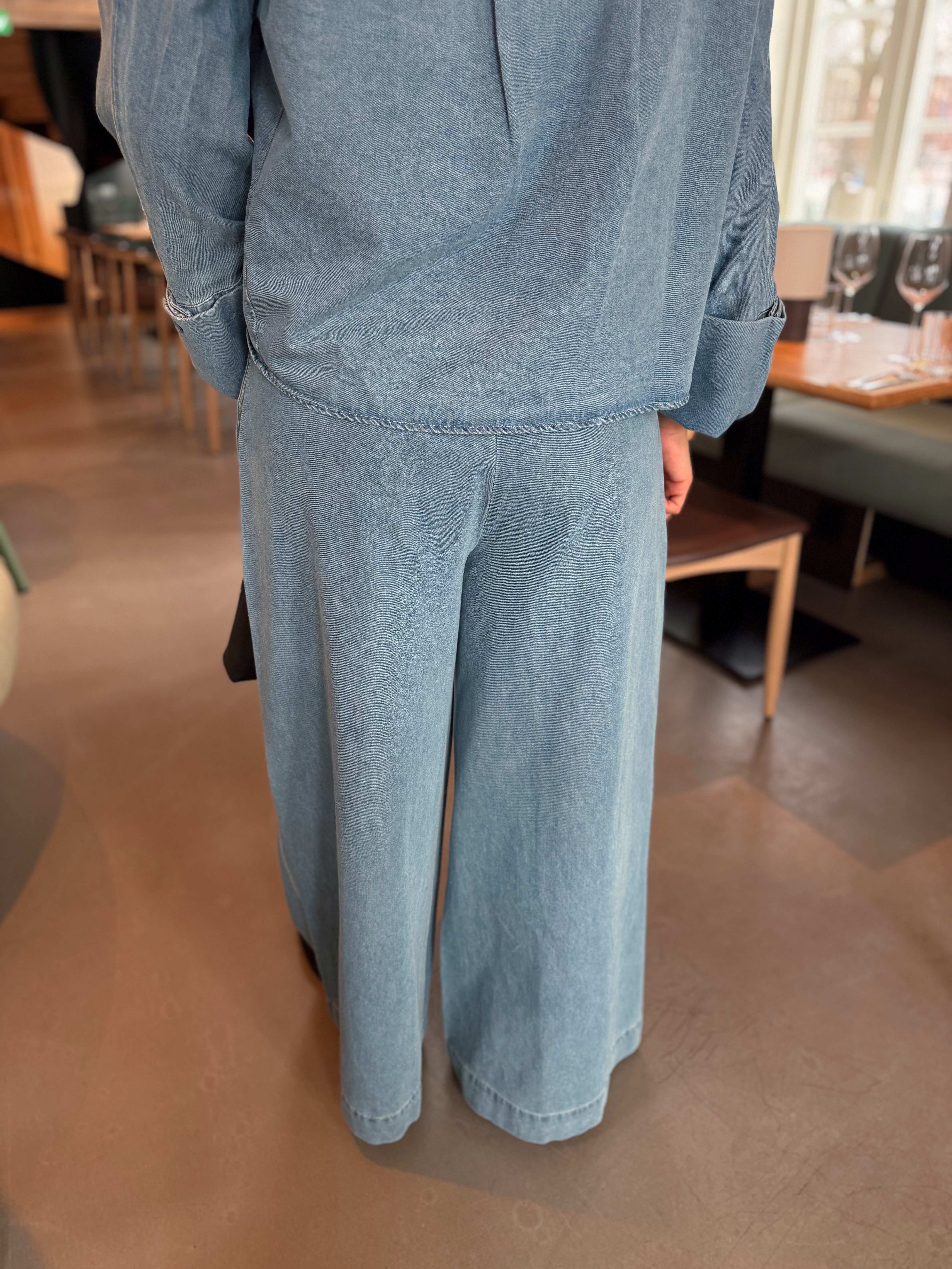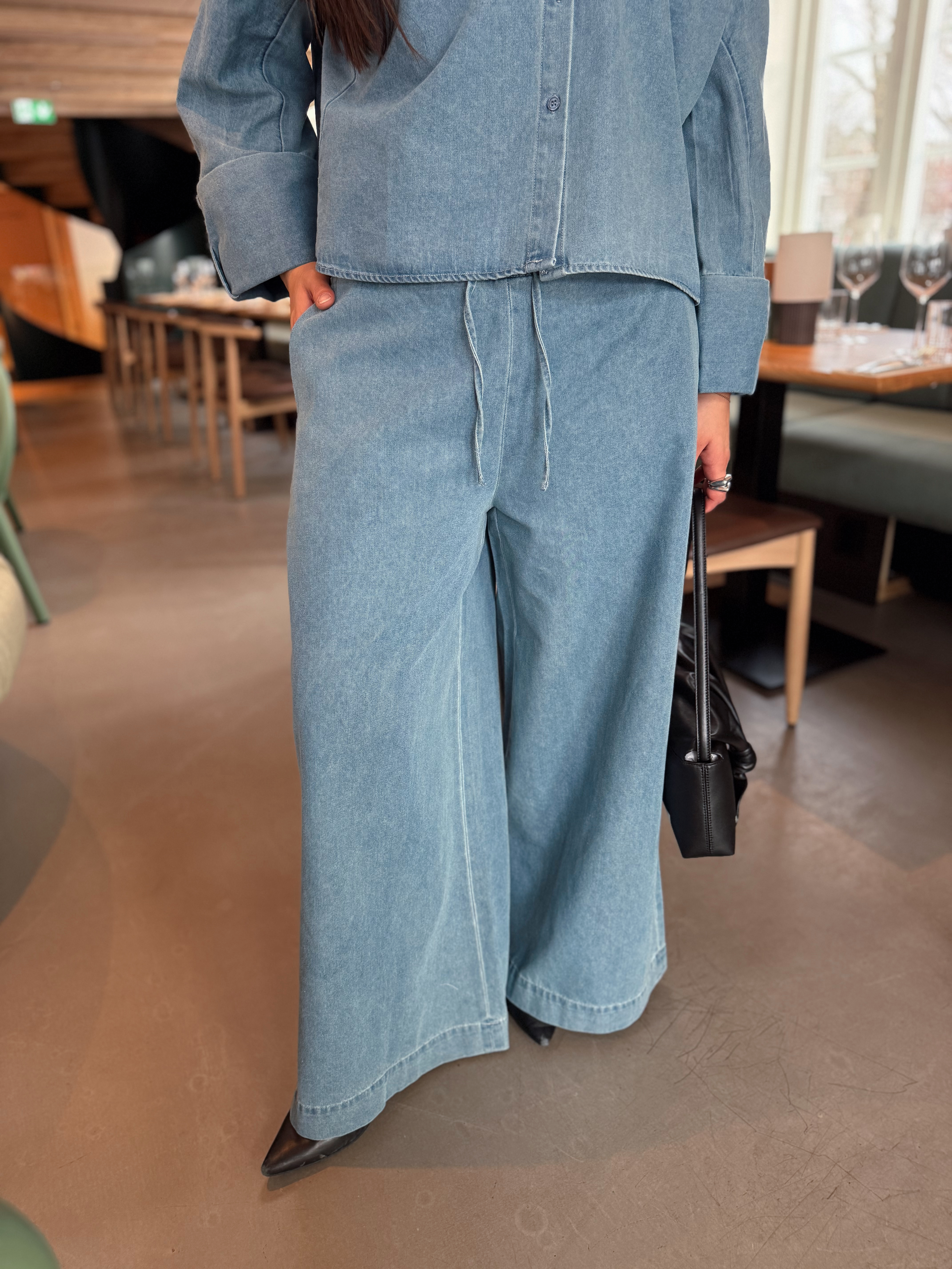 "Atari Denim Pants" fra Iben er en avslappet og moderne bukse med oversized passform, laget i myk og lett denim chambray i en klassisk blåfarge. Den ledige silhuetten kombinert med justerbar snøring i livet gir både komfort og fleksibilitet, samtidig som buksen får et stilrent uttrykk. Det pustende denimstoffet gir en fin balanse mellom struktur og mykhet, noe som gjør buksen perfekt både til hverdags og mer pyntede anledninger. Bruk den sammen med matchende Atari Denim Shirt for et helhetlig denimsett, eller style med en enkel t-skjorte eller bluse for en gjennomført og avslappet look. En tidløs bukse du vil bruke sesong etter sesong.