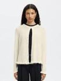 "Lulu Frill Knit Cardigan" fra Selected Femme. En feminin cardigan i myk, børstet kvalitet med delikate volanger langs kantene. Designet har rund hals, ton-i-ton knapper og rett passform som faller flatterende på kroppen. Lulu Frill Ls Knit Cardigan gir et romantisk uttrykk og passer perfekt over en enkel topp eller kjole.