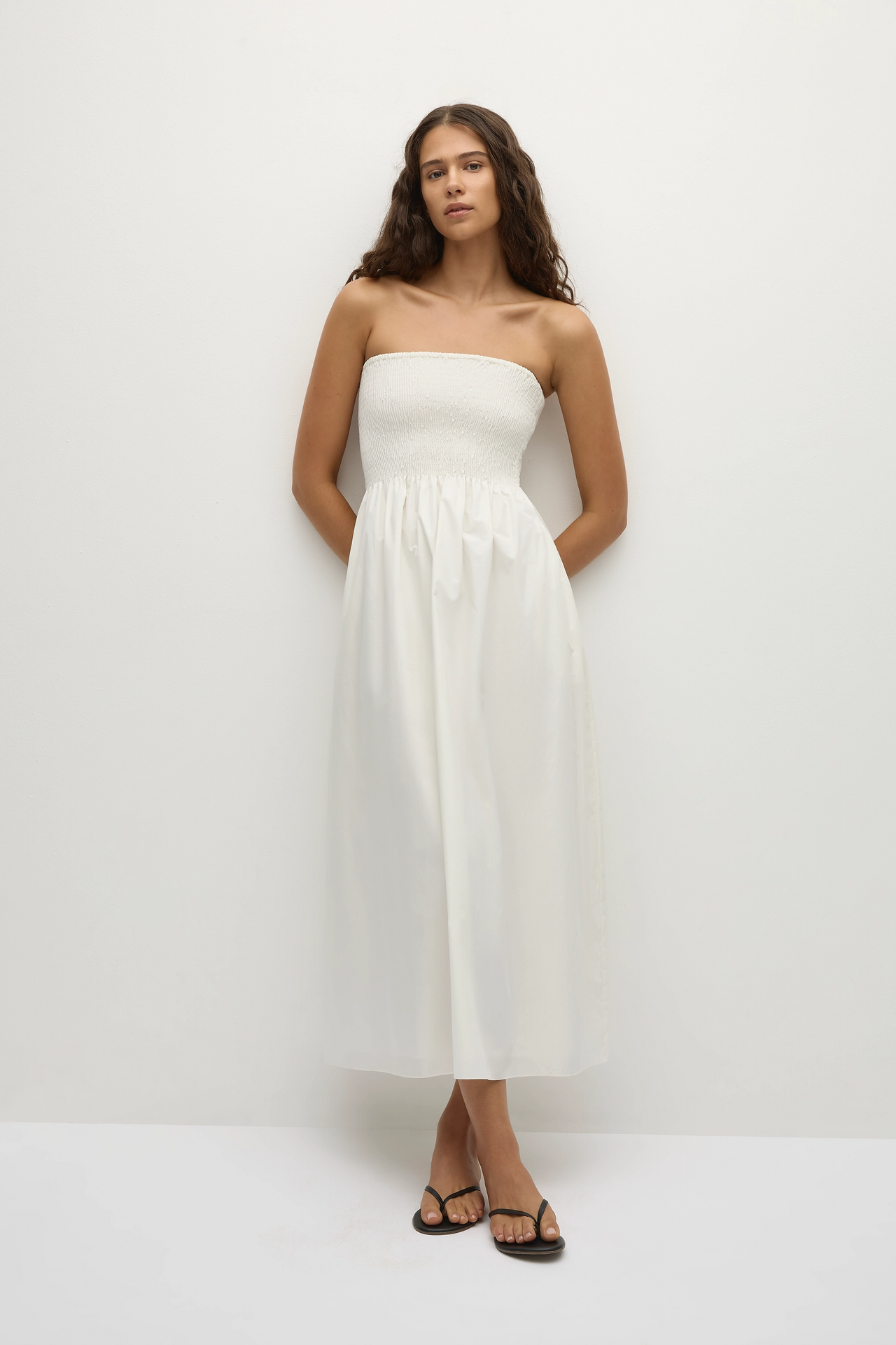 "Jamie midi dress" fra Faithfull the brand er en nydelig midi-kjole i deilig lett bomull. Kjole er stroppeløs og a-formet skjørt.