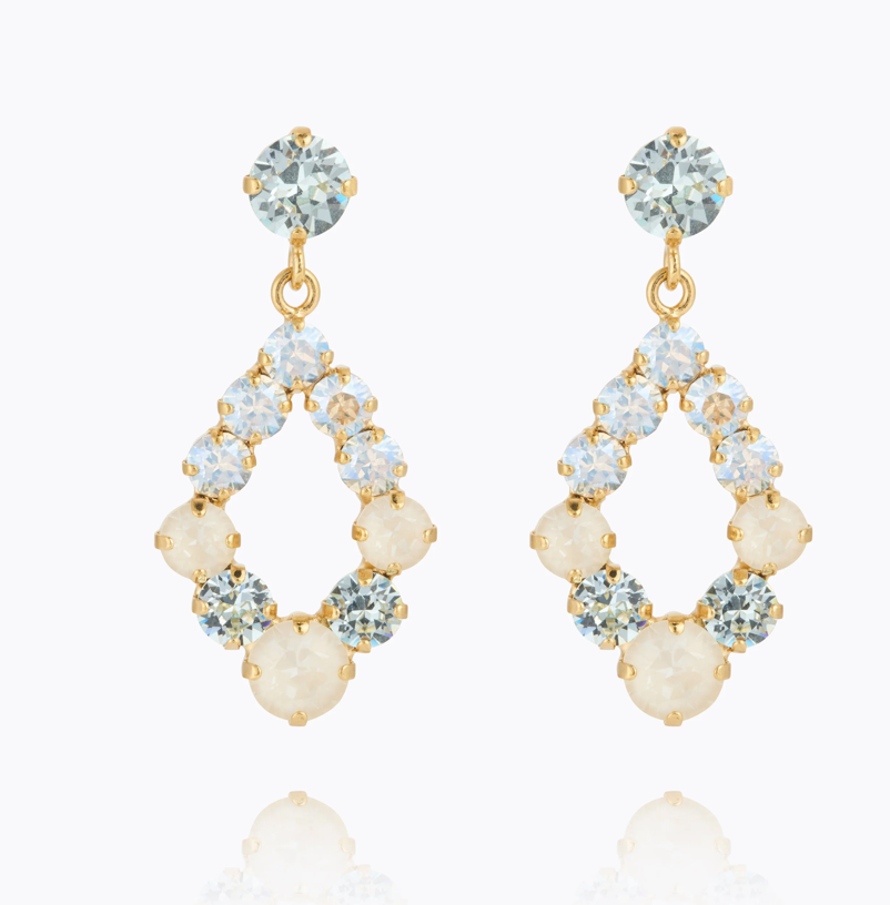 «Mini delia earrings» fra Caroline Svedbom. Vakre øredobber som passer perfekt til festkjolen. De dråpeformede øredobber med runde glitrende Swarovski-krystaller.
