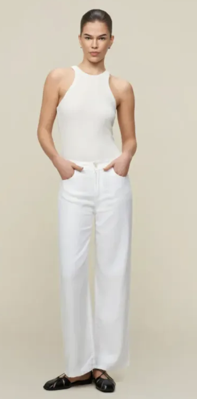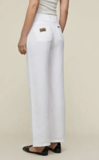 Buksen har avslappet passform med høyt liv og rette vide bein.