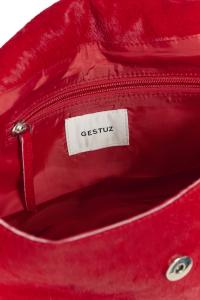"Weda Clutch" fra Gestuz. Denne clutchen er en statement-clutch i en intens rød tone med eksklusiv tekstur som virkelig fanger blikket. Den skulpturelle formen og den rene klaffen gir et moderne og sofistikert uttrykk, mens størrelsen gjør den perfekt til det viktigste du trenger for kvelden.Denne veska løfter både en enkel kjole og en dresset look, og tilfører antrekket en selvsikker, gjennomført finish – en veske som gjør hele forskjellen.