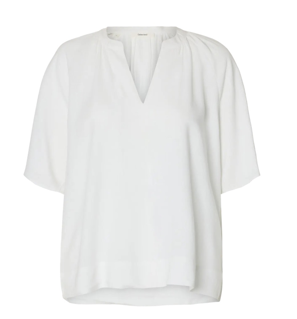 "Viva 2/4 V-Neck Linen Blend Top" fra Selected Femme. Lekker top i linkvalitet. Toppen har v hals, 2/4 ermer og har en normal passform.