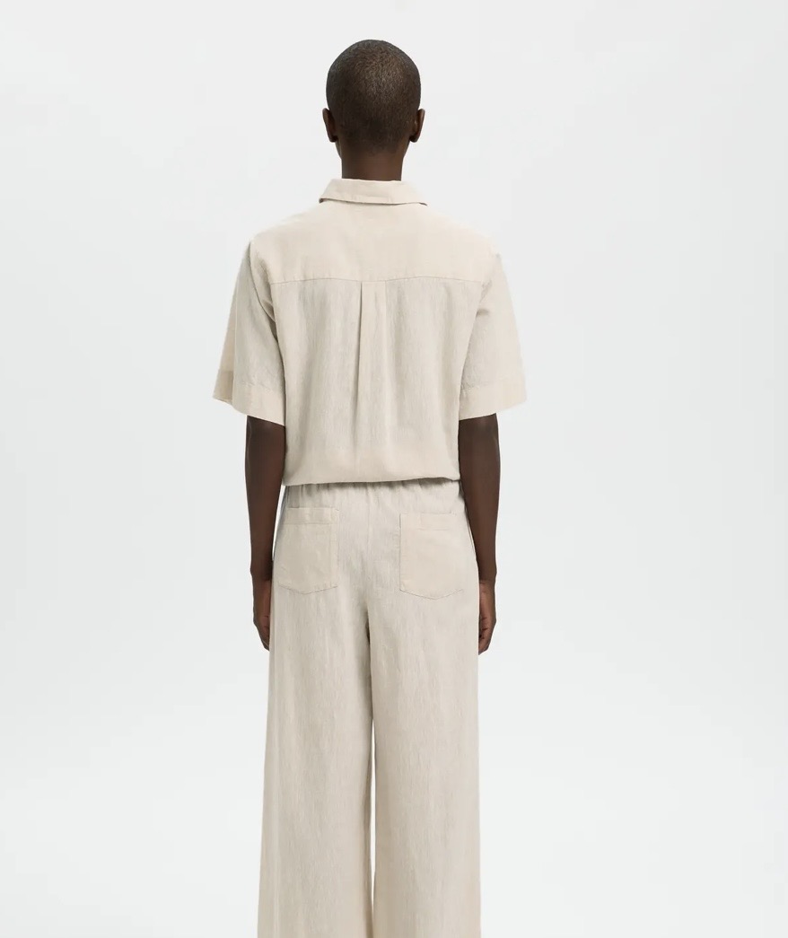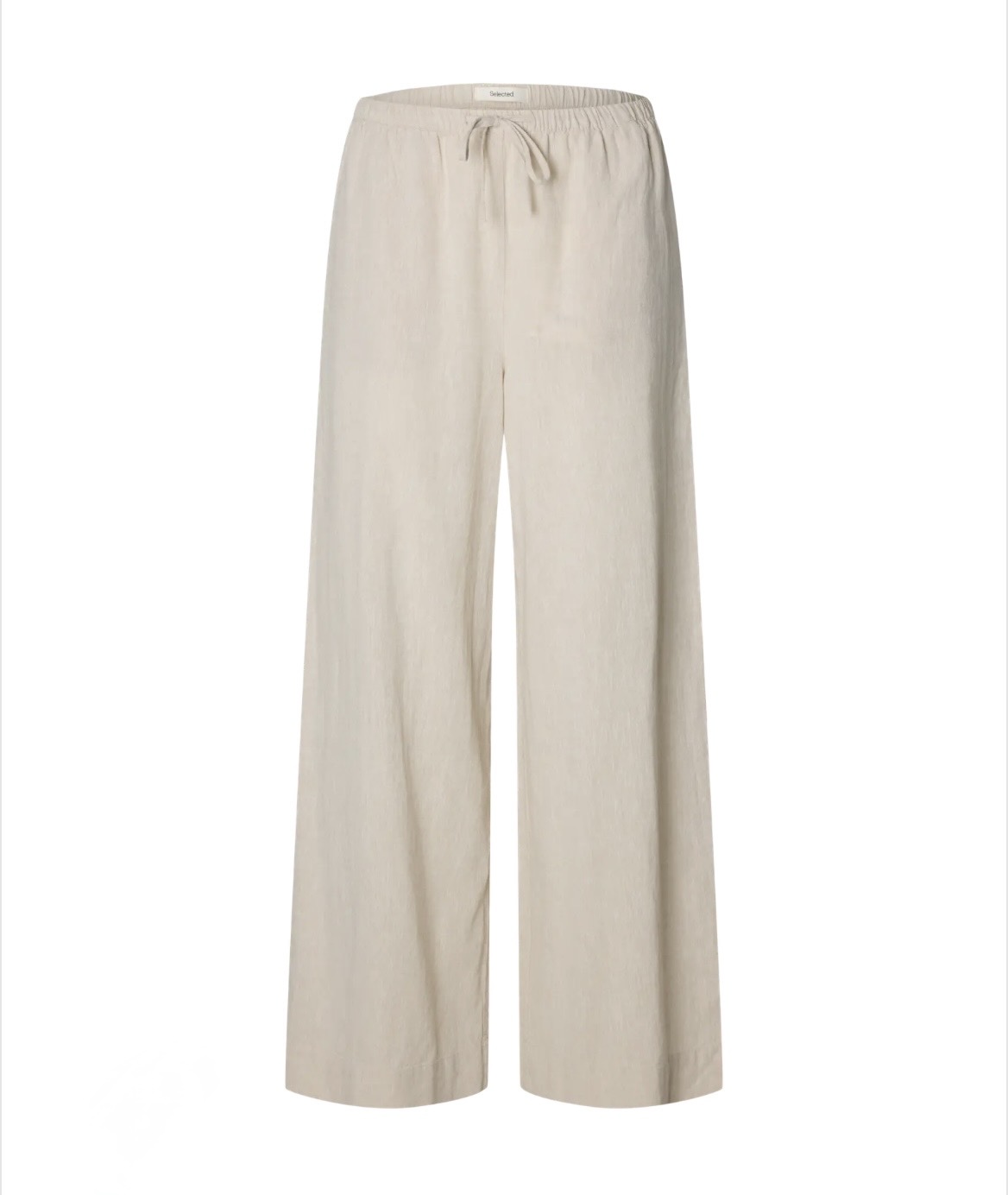 «Luisa wide linen blend pant» fra Selected Femme er deilig lette bukser med lin og bomull med høy midje og rette ben.