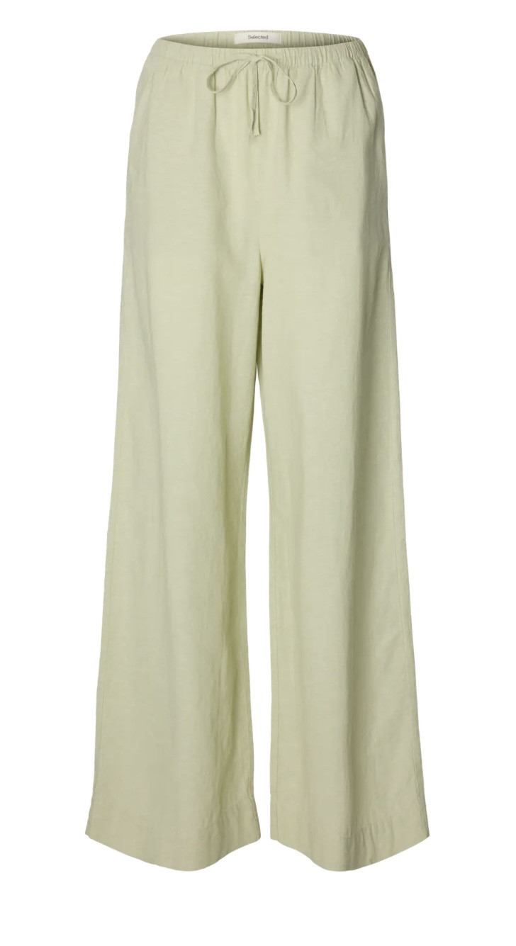 «Luisa wide linen blend pant» fra Selected Femme er deilig lette bukser med lin og bomull med høy midje og rette ben.