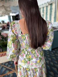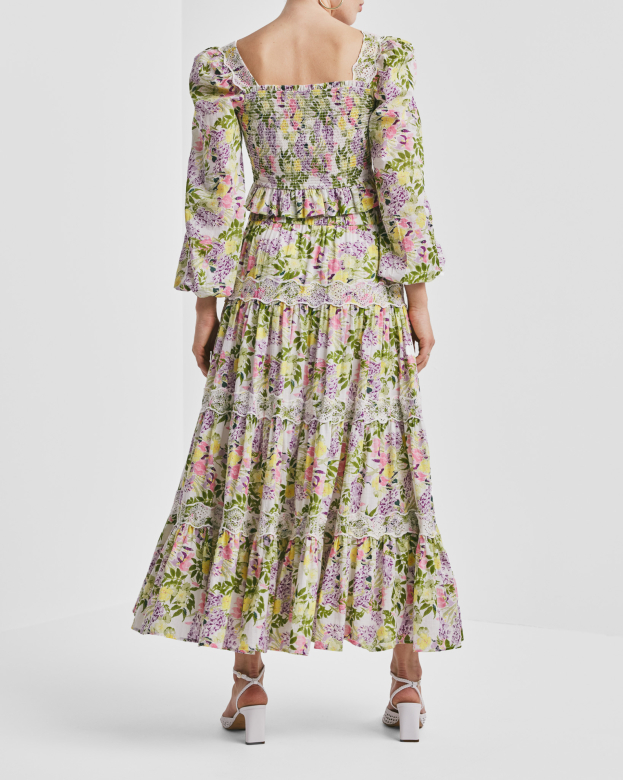 "Cotton Slub Top" fra byTiMo. Cotton Slub Top er laget i byTiMos lette og myke, GOTS-sertifiserte kvalitet, med slub-detaljer i stoffet. Toppen har en tettsittende silhuett med smock, firkantet utringning og en kort lengde med volangkant nederst. Den har lange, voluminøse ermer med elastiske mansjetter, samt vakre innsatser med broderie anglaise på skuldrene.