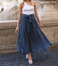 »Vanja skirt» fra MISSMAYA i 100 % viskose i mosscrepe. Det har en midilengde, en tettsittende midje, og de plisserte detaljene i midjen gir skjørtet et fyldig volum.