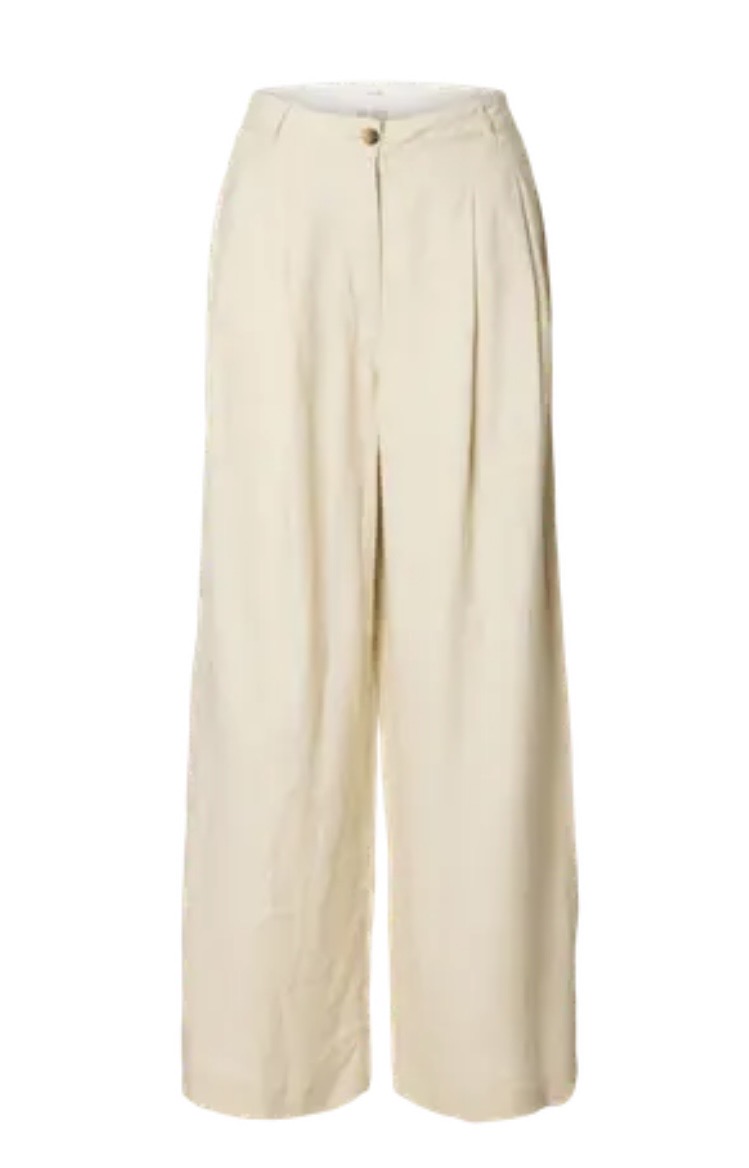«Extra wide magna linen pant» fra Selected Femme. Klassisk bukse med vie rette bein og høy midje.