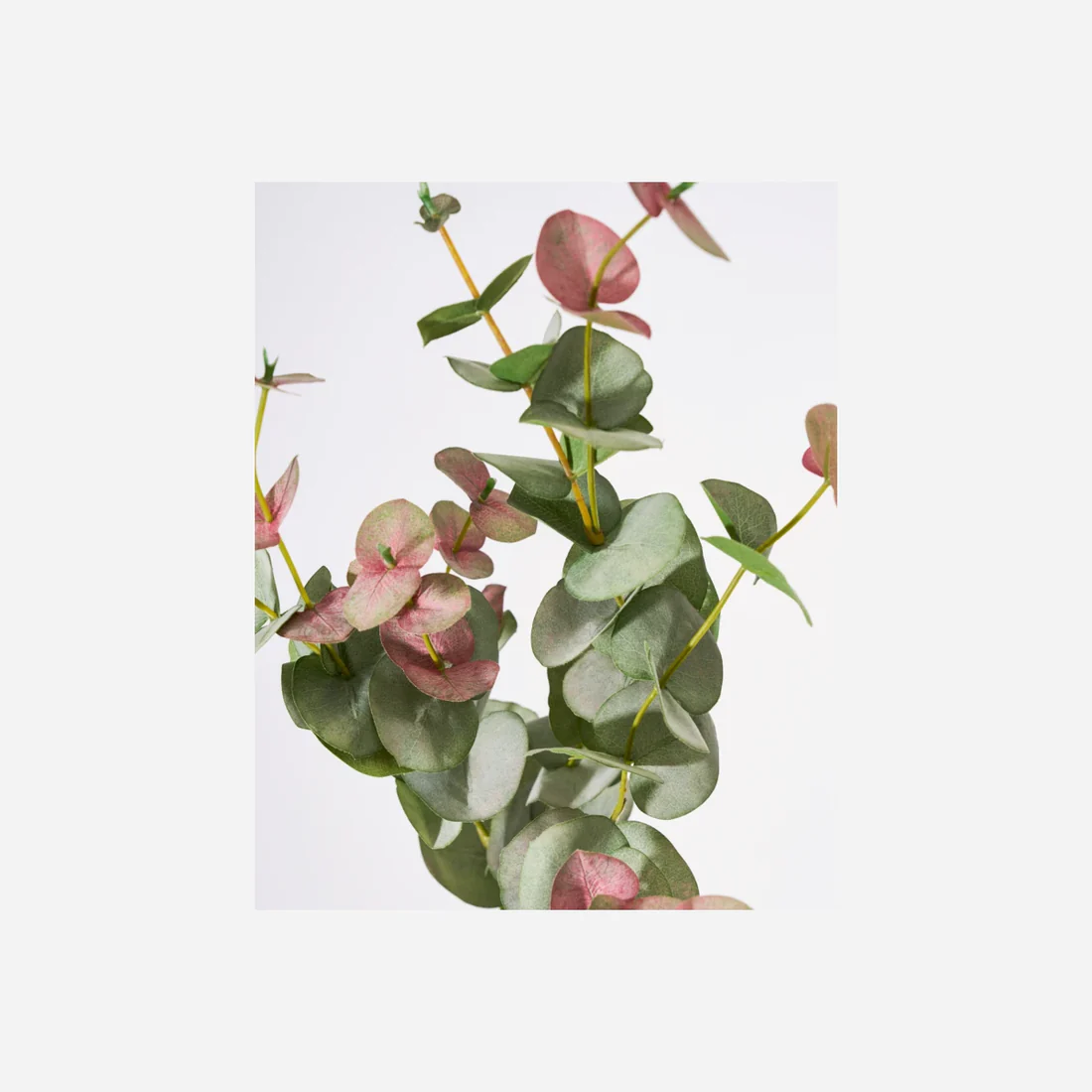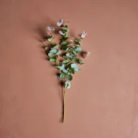 Bring naturen inn med denne kunstige grenen. De mattgrønne bladene med sine subtile rosa undertoner gir den et spesielt naturtro og elegant utseende. Enten den vises individuelt i en vase for et minimalistisk preg eller kombinert med andre grener for å skape en frodig bukett, bringer denne grenen varig grønn friskhet til hjemmet ditt. - Naturtro design - Matt grønn med rosa undertoner