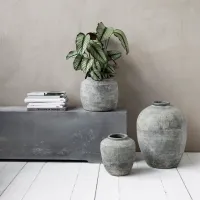 Med en ny vase kan du enkelt endre utseendet på hjemmet ditt. Med Rustik fra House Doctor får du en fantastisk vase som passer perfekt til enhver type innredning. Vasen er laget av leire, og den har et superkult, rustikt betongutseende. Det rustikke utseendet gir et snev av livlighet og personlighet til enhver innredning, og den vil derfor se bra ut i ethvert rom i hjemmet ditt. Vasen er den perfekte detaljen på gulvet i gangen eller stuen. Kombiner Rustik med lignende produkter fra samme serie for å skape et unikt utseende.