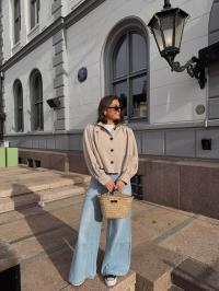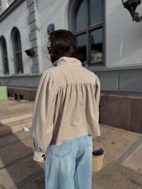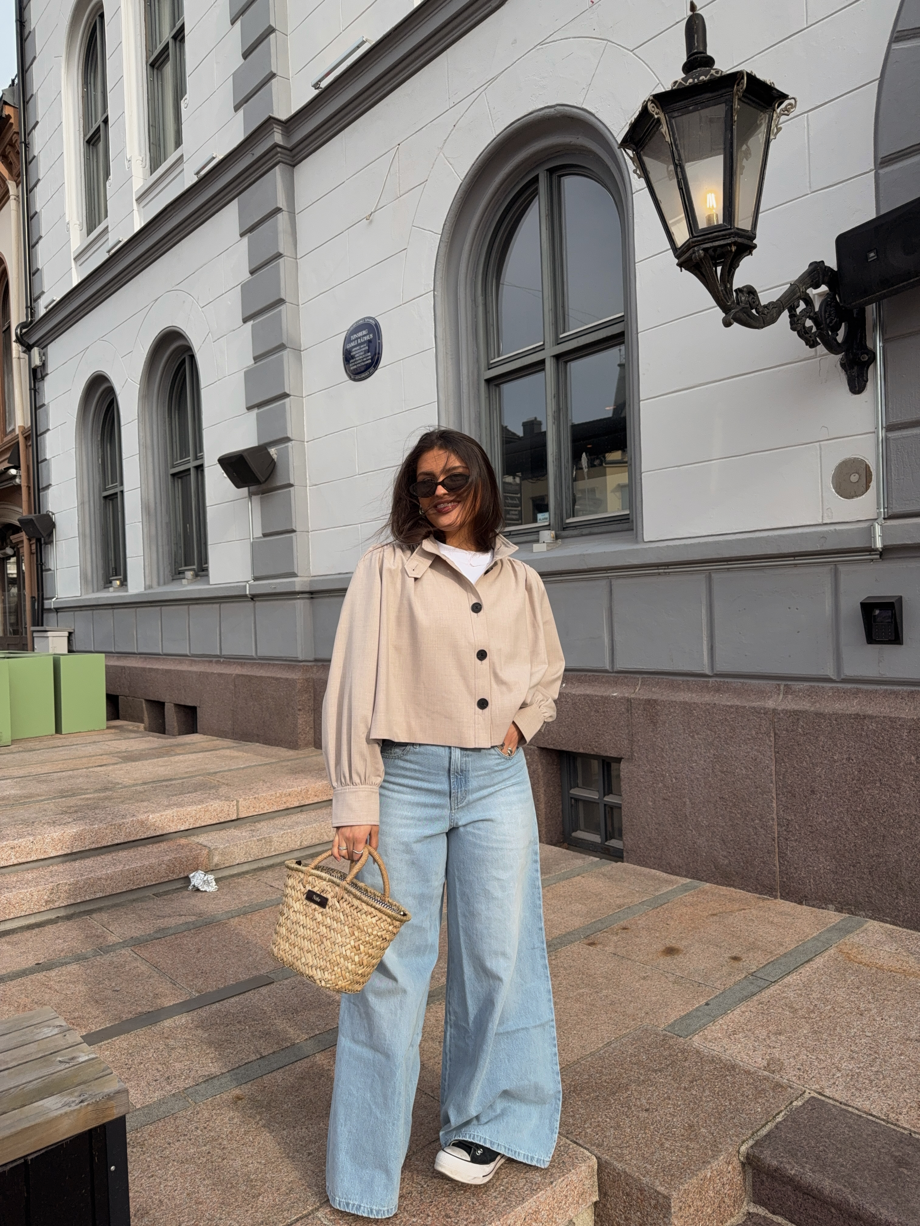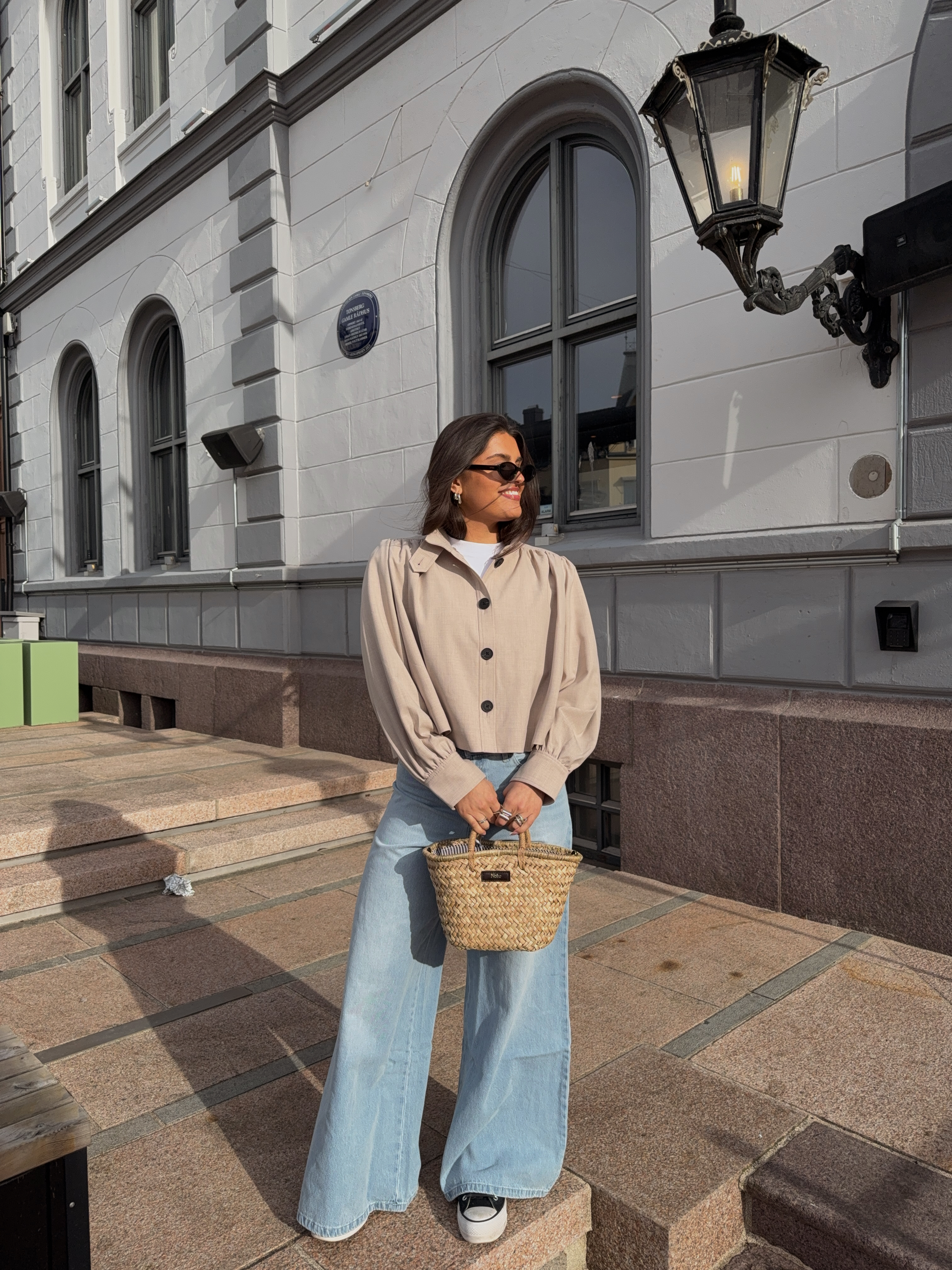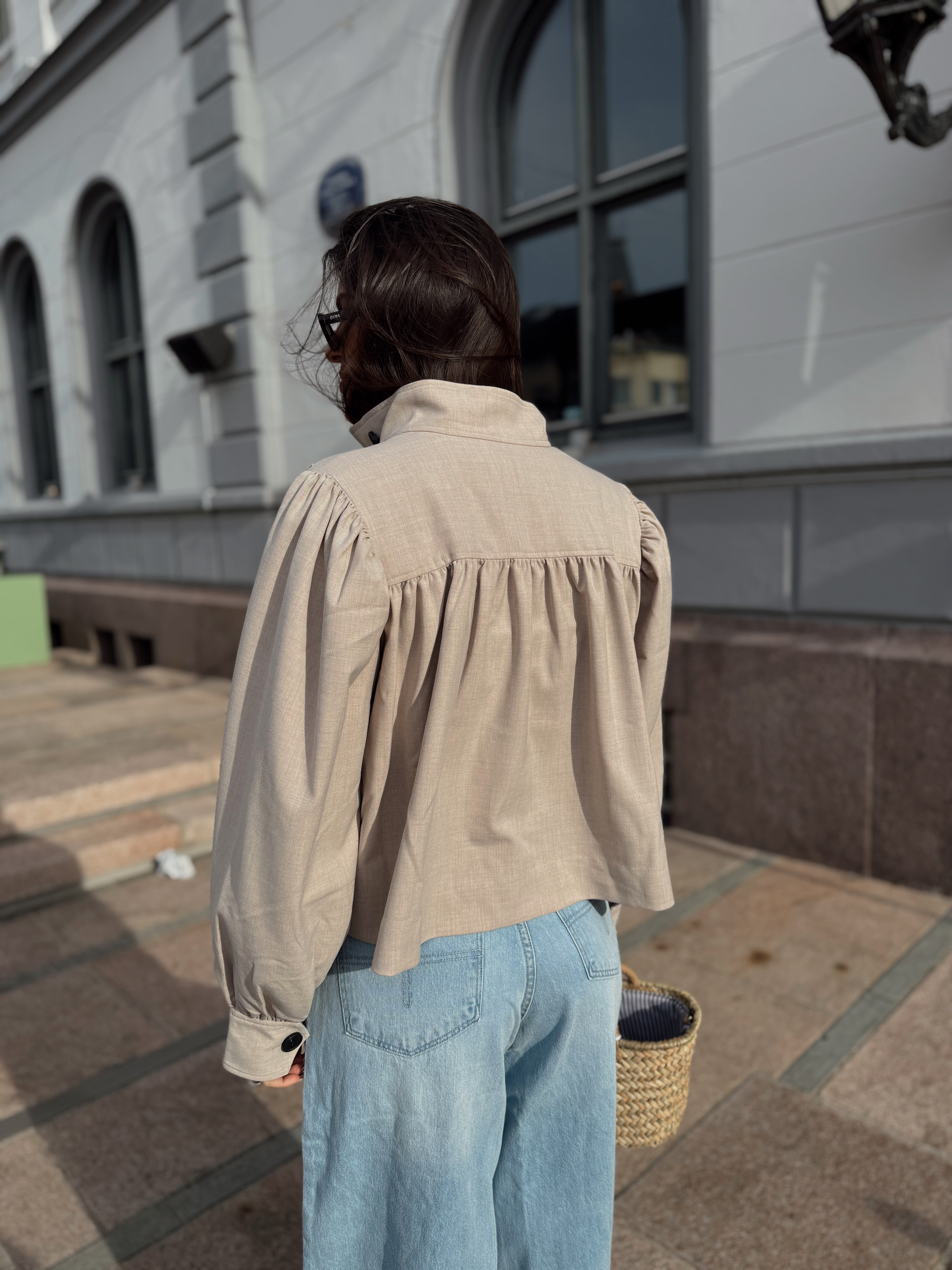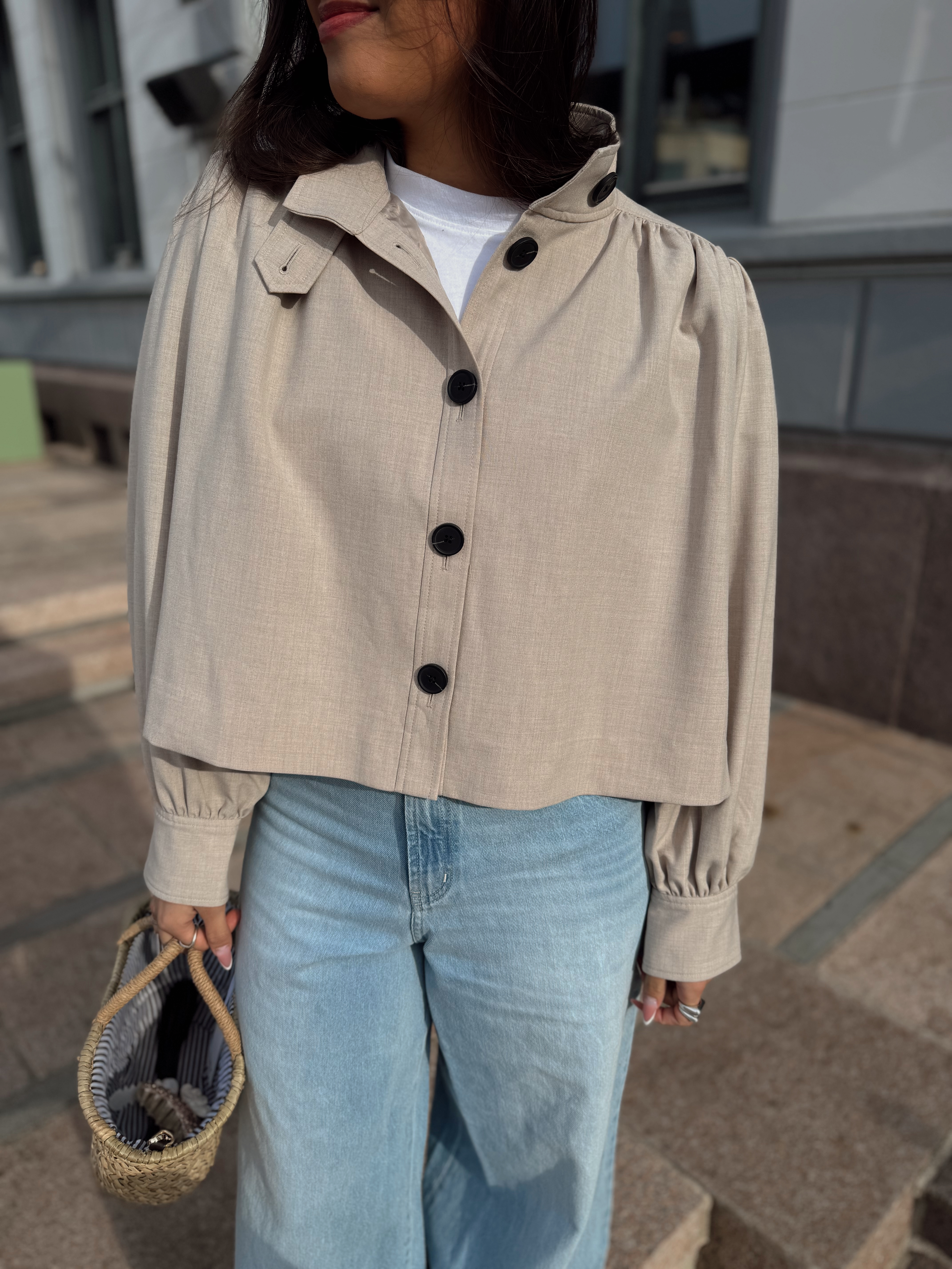Jakke Med puffermer. Jakken er i en myk kvalitet med drapert design.
