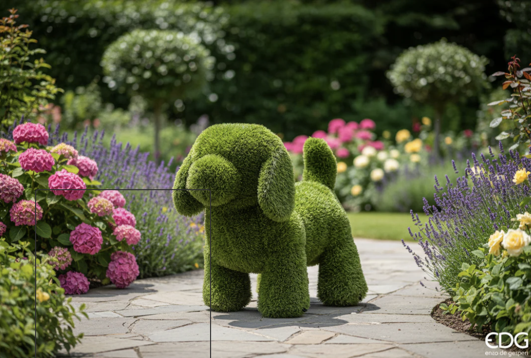 Denne helt lekre dekorasjonshunden i 100% plastikkgrass er så dekorativ og vil garantert få mye oppmerksomhet.