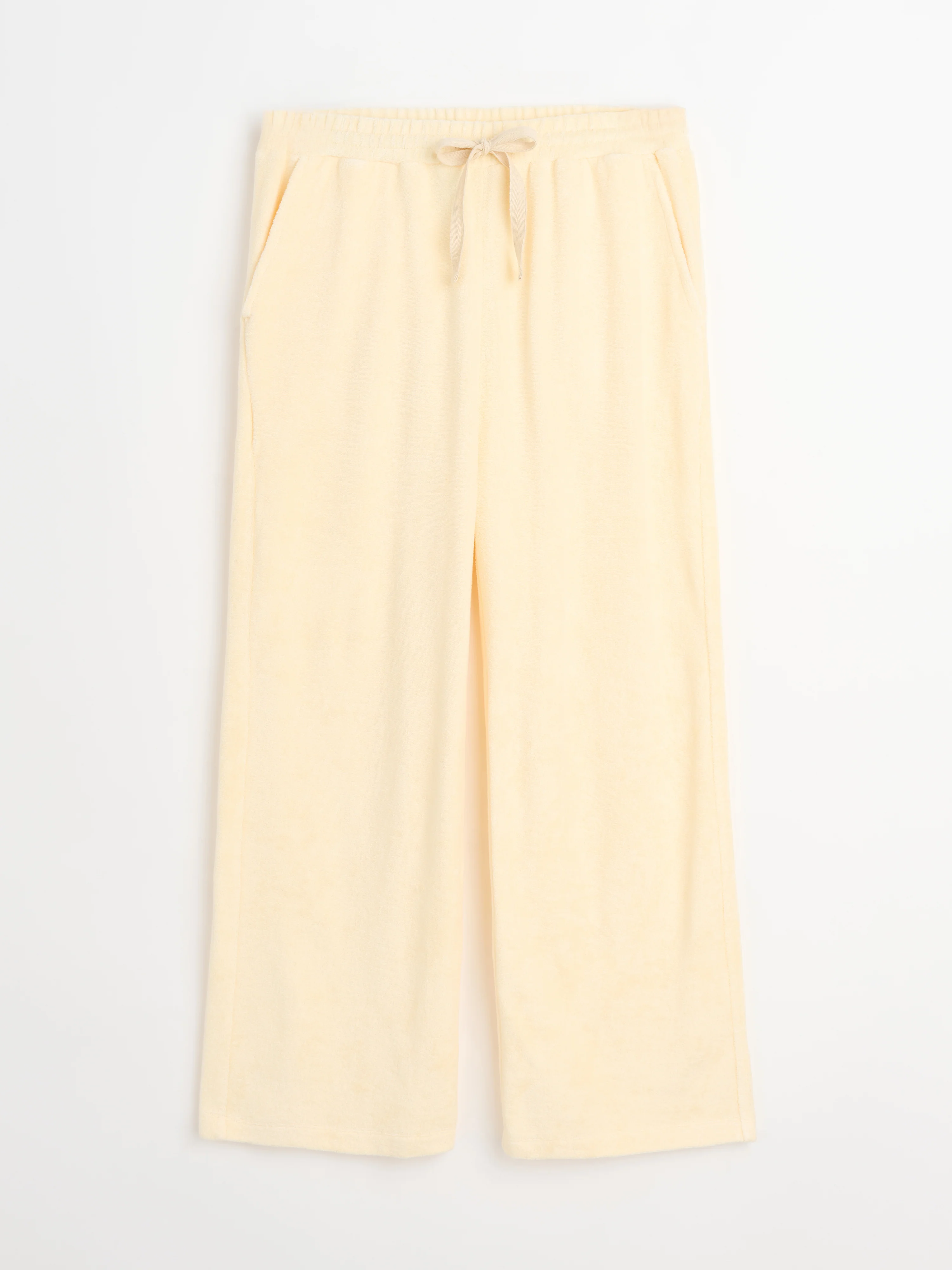 «Naram Pants» fra Bongusta er frottébukser laget av 100 % økologisk bomull og er OEKO-TEX®-sertifisert. En unisex-modell som kan brukes til ulike formål. Buksene er lange, med elastisk linning og snøring, samt to sidelommer. Vår vri på allsidige bukser der design og komfort forenes.