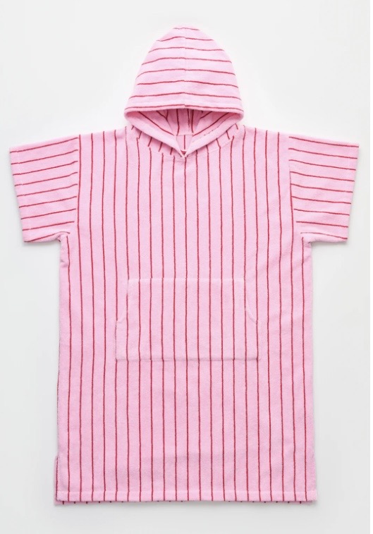«Naram poncho» fra Bongusta er laget av 100 % økologisk bomull og er OEKO-TEX®-sertifiserte. Ponchoen er vevd med dobbel tråd, noe som sikrer høy absorberingsevne, lang holdbarhet og ultimat mykhet. Inspirert av den avslappede stemningen i surfeverdenen, kombinerer Naram Poncho komfort, praktisk bruk og design. Den har hette og en stor frontlomme.
