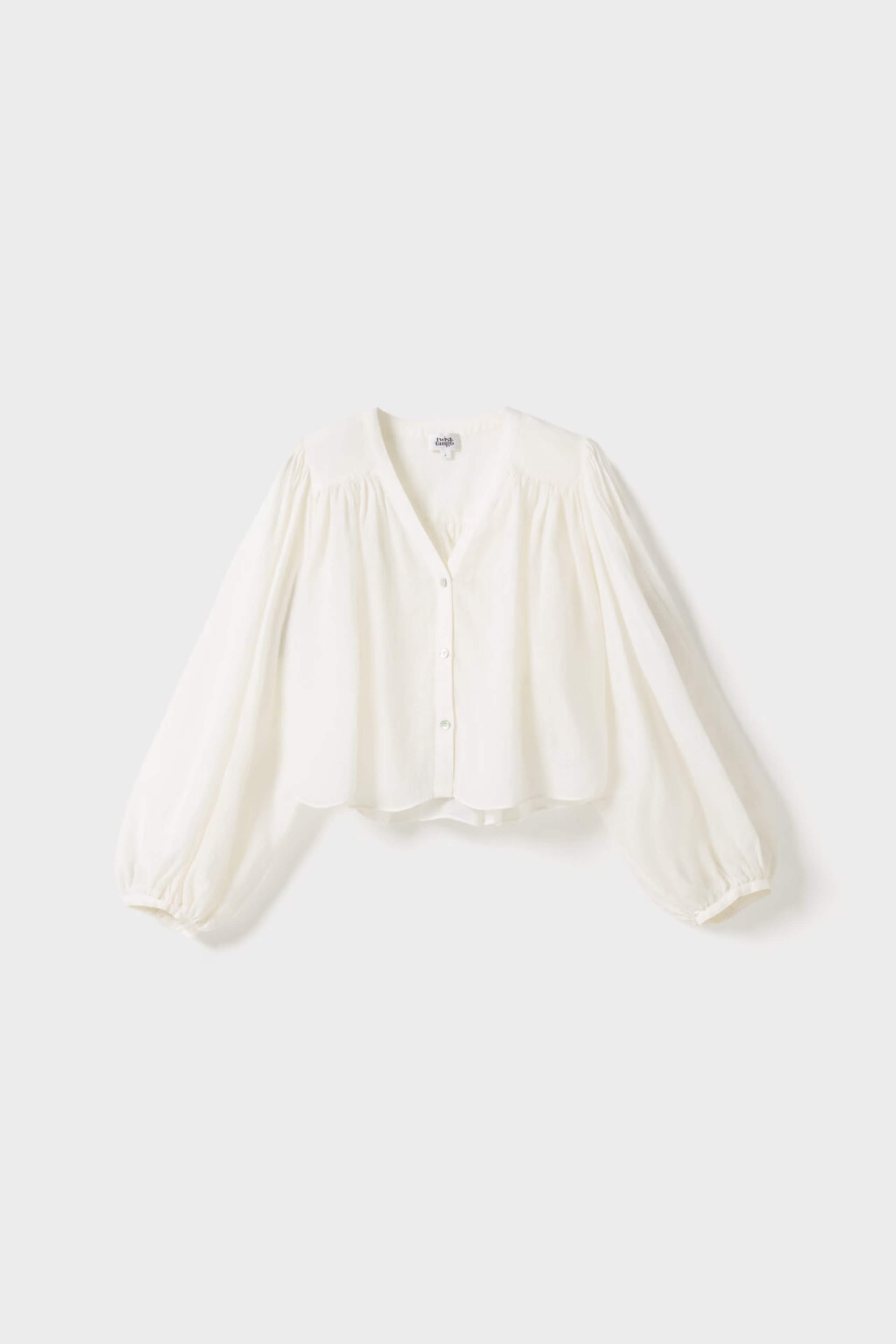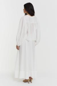 Leja-blusen har en knappelukking foran med rynkede mansjetter og delikate folder bak. En tidløs stil som balanserer mykt volum med en raffinert silhuett.