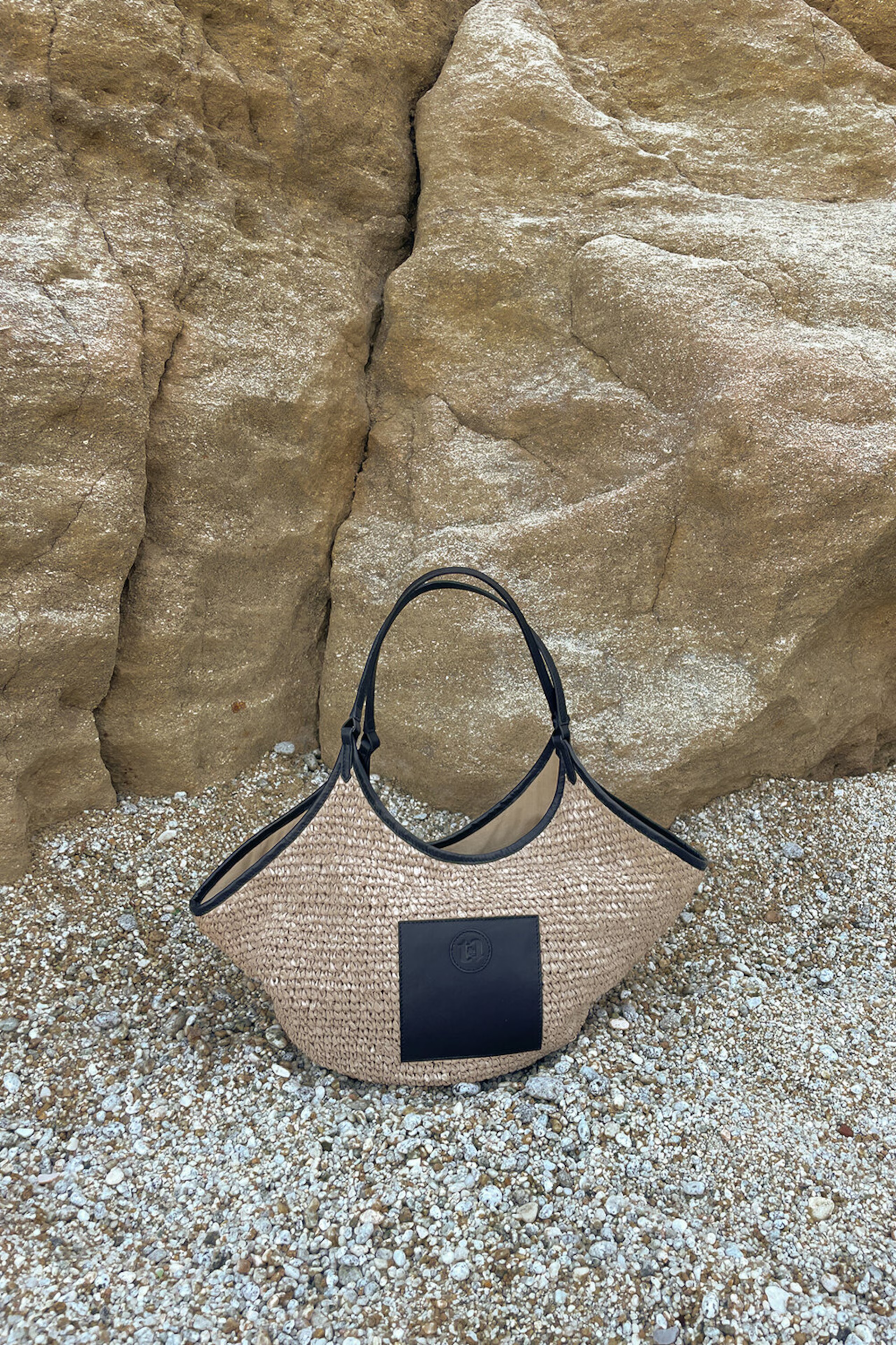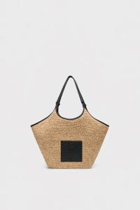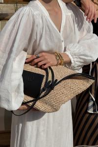 Laget av: 100% Raffia + 100% skinn