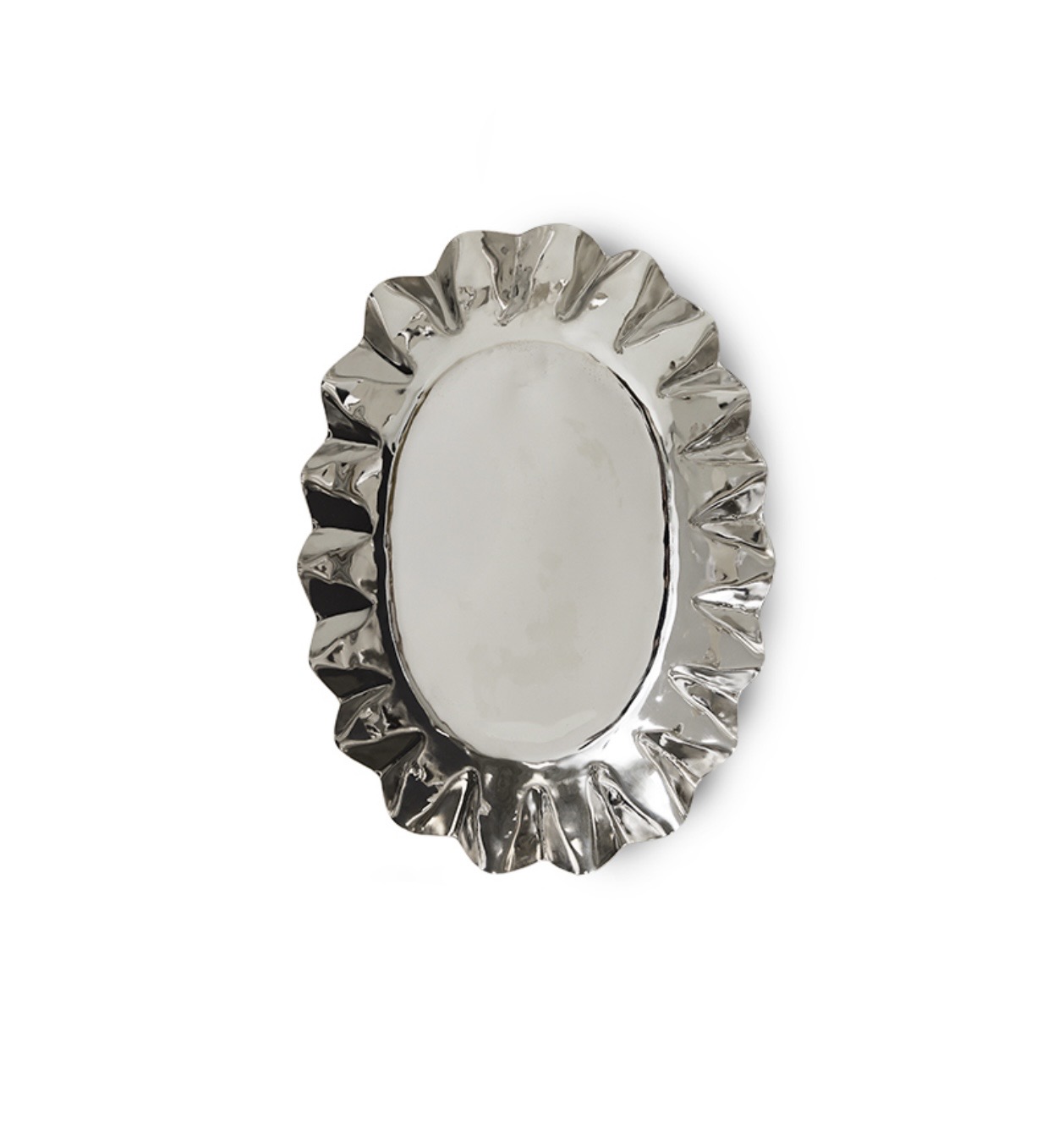 Elegant, allsidig og akkurat passe størrelse – dette mellomstore kromfatet fra vår New Classics-serie gir et polert preg til ethvert interiør. Bruk det til å servere, style eller henge det opp som en skinnende veggdekorasjon. Enten det vises frem eller er i bruk, gir det diskré eleganse med en moderne vri.