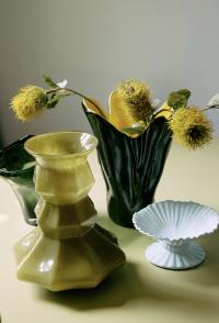 Denne vasen er generøs i størrelse og rik på farger, og er et ekte midtpunkt. Den dype fargen og den elegante formen gjør den ideell for mellomstore til store buketter – men like slående når den står tom. Plasser den på bordet eller kjøkkenbenken for et uanstrengt preg av storhet.