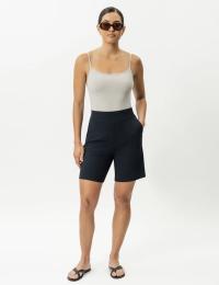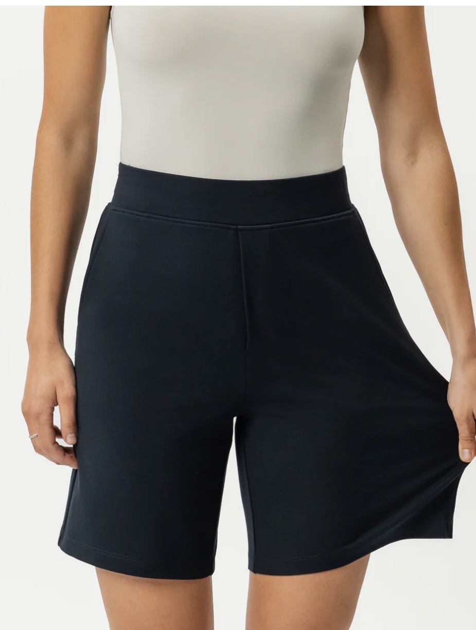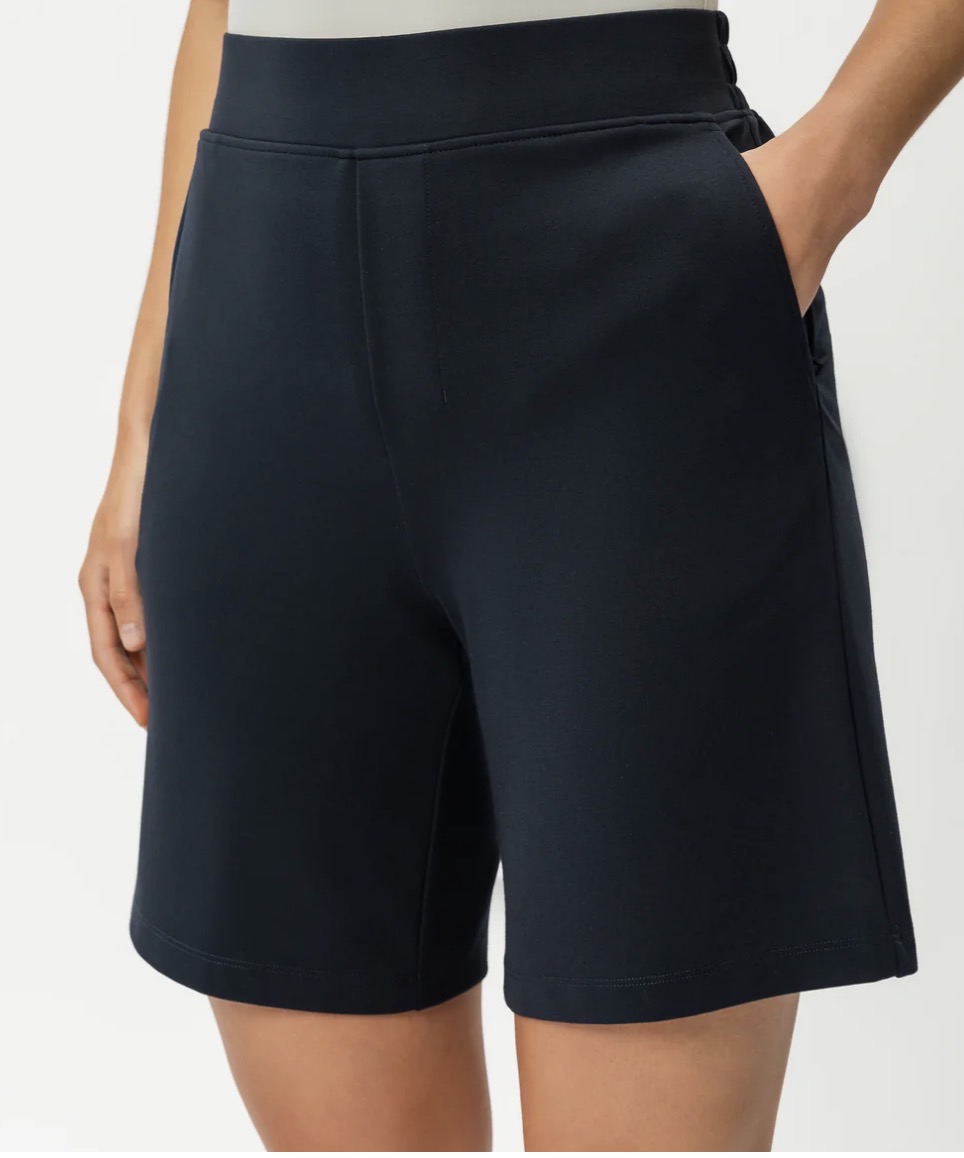 "Light Ponte Shorts" fra Ninepine. Oppdag maksimal komfort og en avslappet, stilren look med våre lette ponte-shorts, perfekte både til hverdags og mer pyntede anledninger. Laget av mykt og fleksibelt stoff med 4-veis stretch gir de optimal bevegelighet og komfort, samtidig som de er tilgjengelige i fire ulike lengder for å passe ulike preferanser. Shortsen har to praktiske stikklommer, en dekorativ gylf og baklomme-detaljer som gir et mer sofistikert uttrykk, samt en behagelig elastisk linning med glatt front for en flatterende passform.