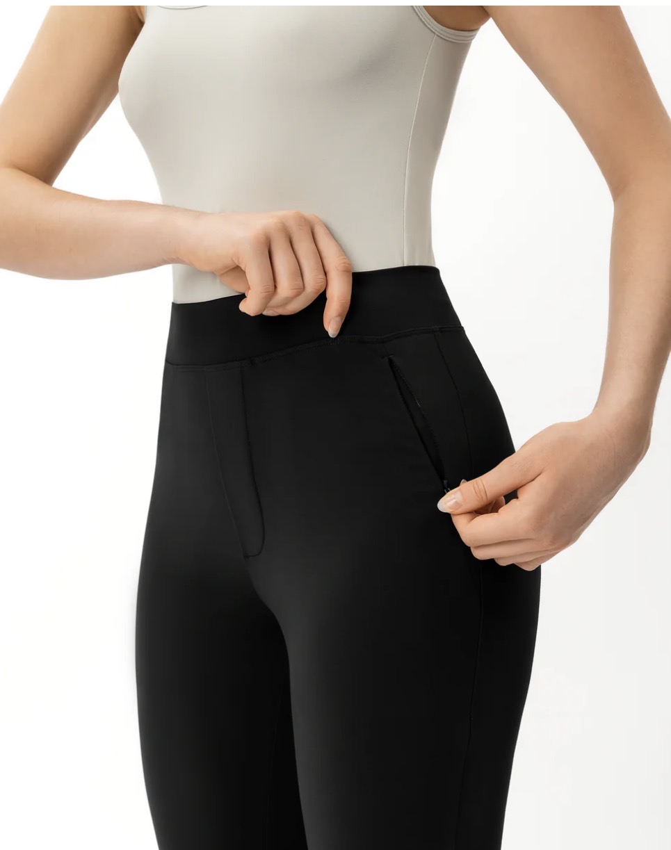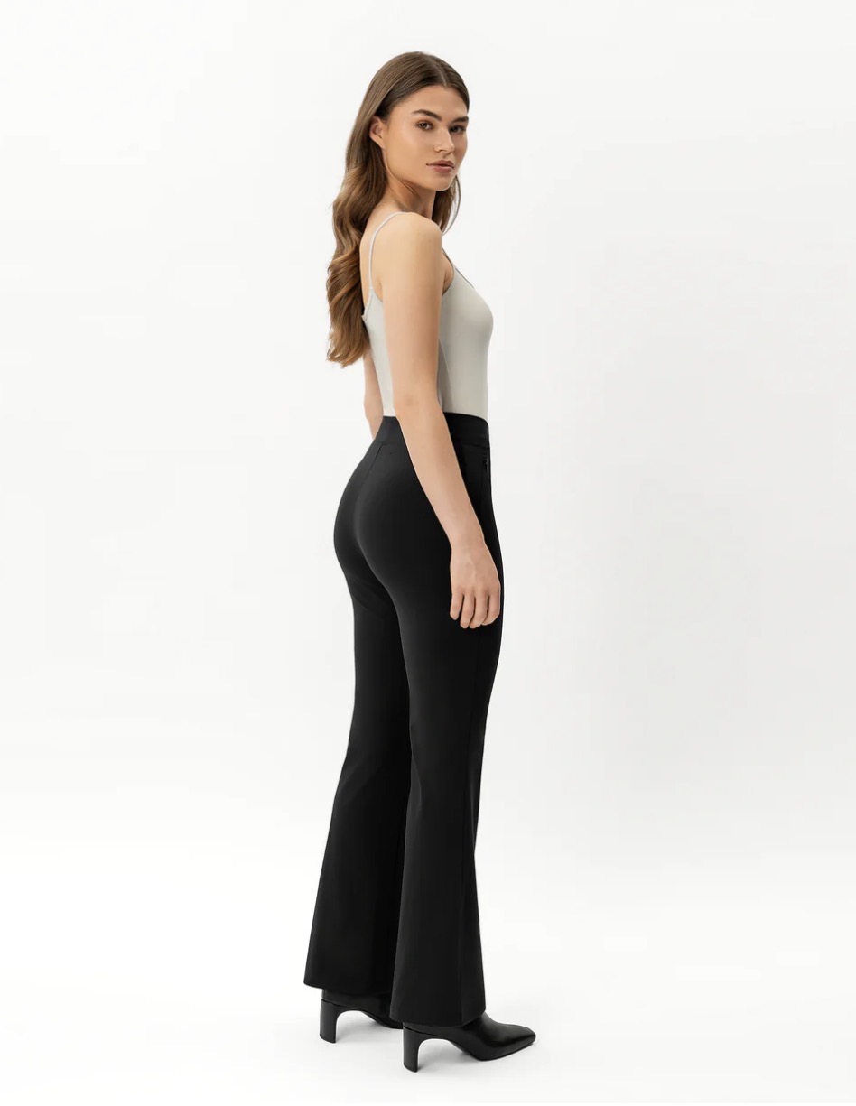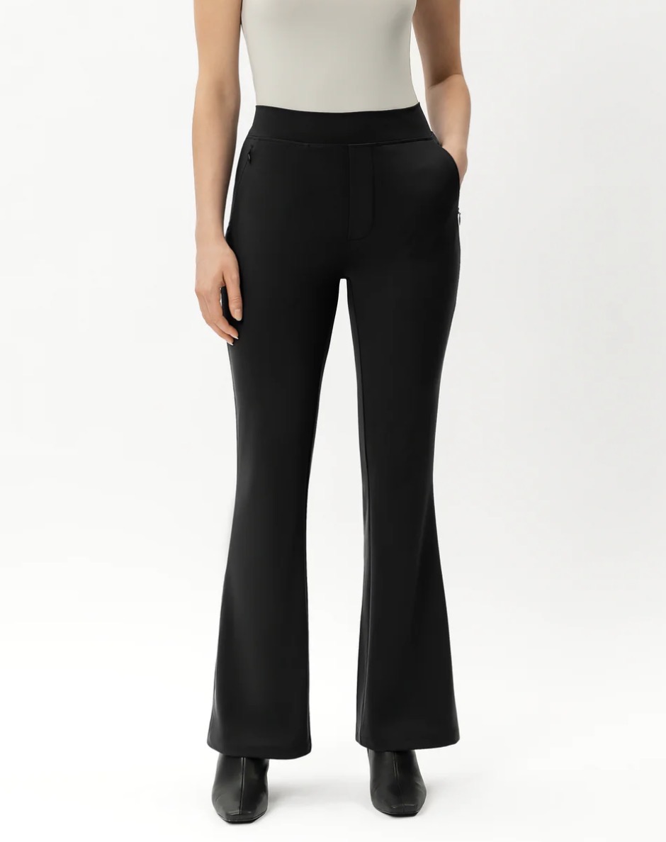 "Asana Bootcut Pant" fra Ninepine. Den ultimate buksen til «alt». Med en flatterende bootcut-passform sitter den tett over hofter og lår og får en lett utsving fra kneet og ned. Buksen har diskrete YKK-glidelåslommer, høy midje med en sømløs, brettet linning og en dekorativ gylfdetalj for et mer gjennomført uttrykk. Den er laget i et mykt, matt og lett børstet ReSoftLux™-stoff som gir en komfortabel og luksuriøs følelse. Perfekt til hverdagsbruk, jobb, dans, reise og avslapning – dette er buksen du alltid kan stole på for både stil og komfort.