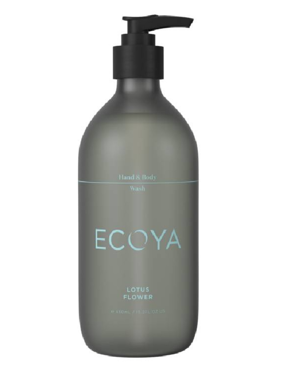 "Hand & Body Wash 450ml" fra Ecoya. Såpen er plantebasert og er vennlig mot huden. Den kommer med duften av australsk hvit lotusblomst, dype nyanser av stillehavs vanilje og patchouli. En varm og delikat krydret blanding som både er sensuell og avslappende.