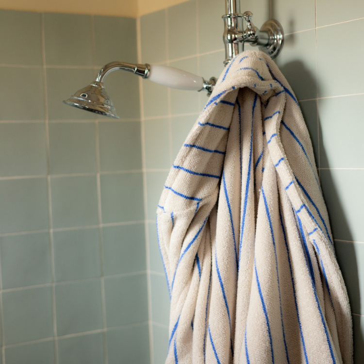 Gi deg selv en myk omfavnelse med vår Naram-badekåpe. Forleng baderitualet og rolige morgener med et klassisk design, myke farger og striper.
