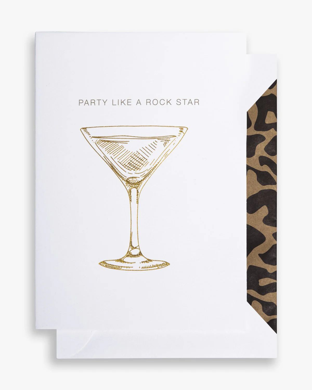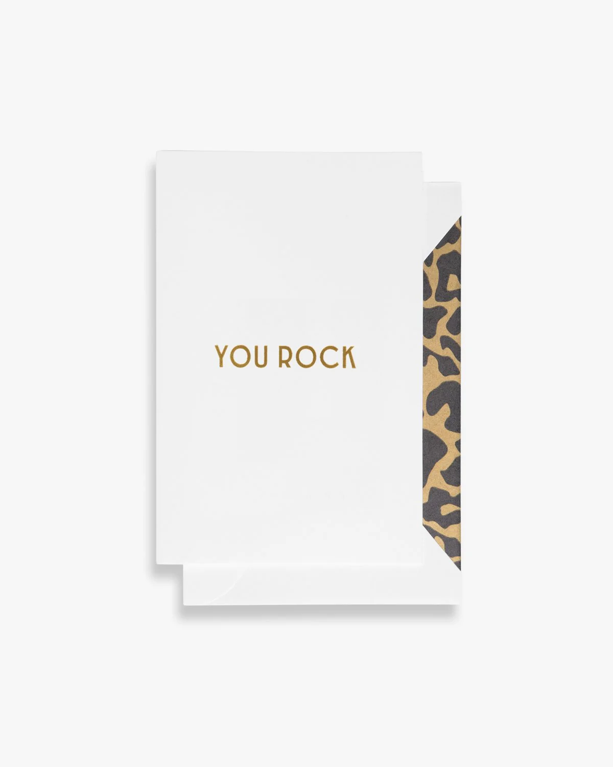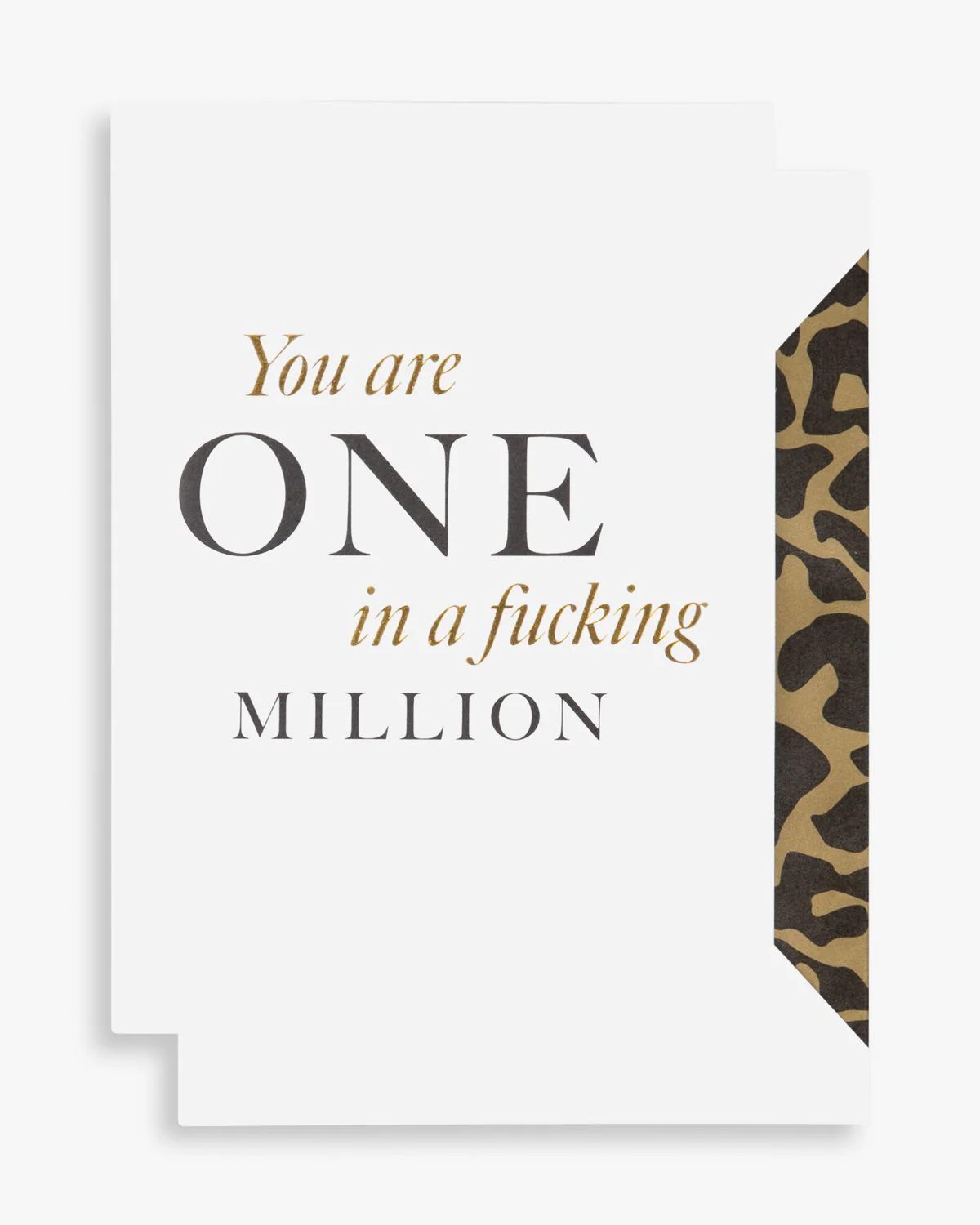 Et premium hvitt kort med en gullfarget tekst på forsiden, og en helt blank innside for personlige meldinger. Hvert kort leveres med en håndlaget konvolutt foret med silkepapir for en elegant finish.