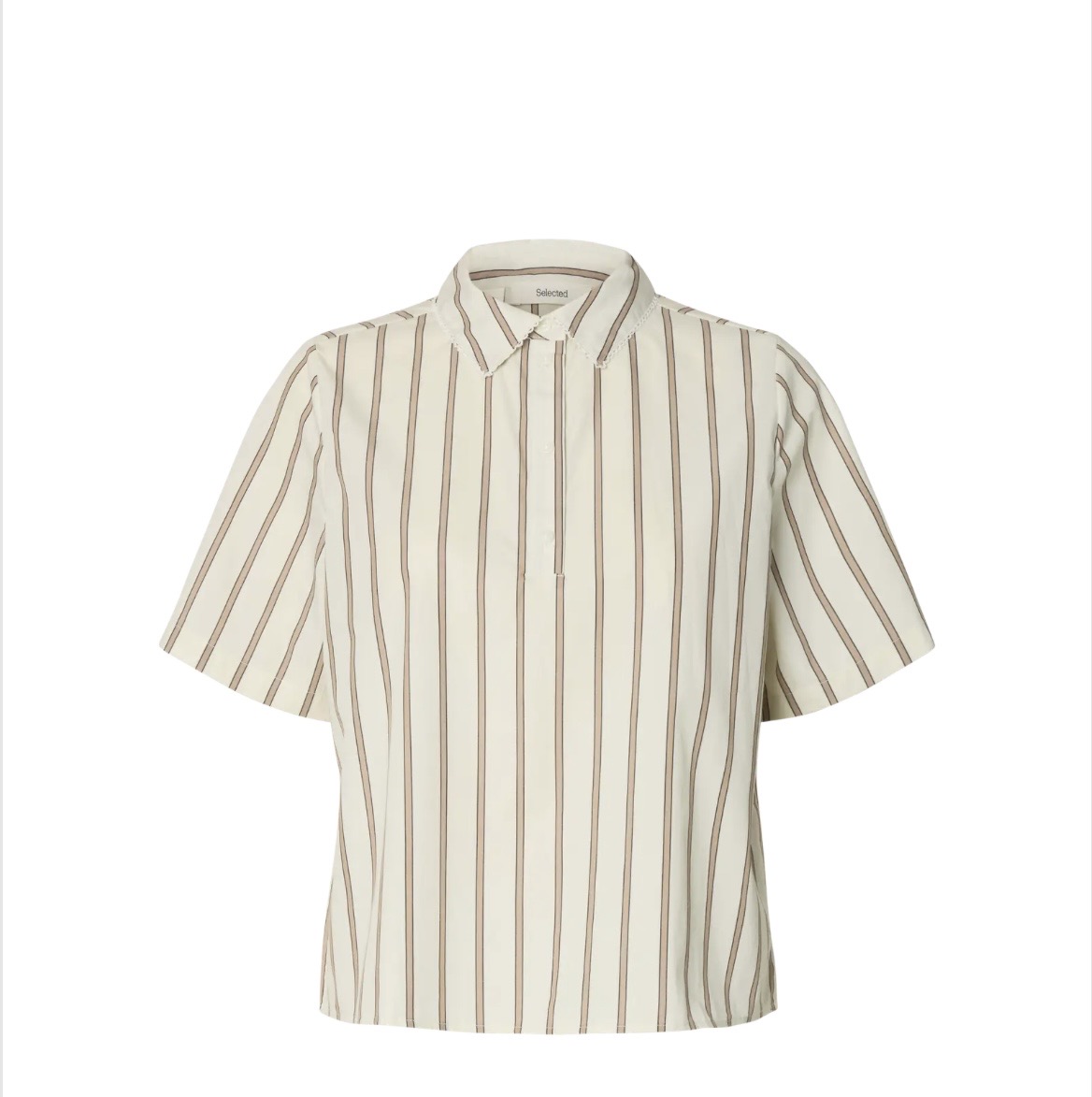 "Gina Relaxed Crochet Edge Polo" fra Selected Femme. Nydelig polo topp med korte ermer og klassisk skjorte krage med søte broderte detaljer. Style med matchende shorts!