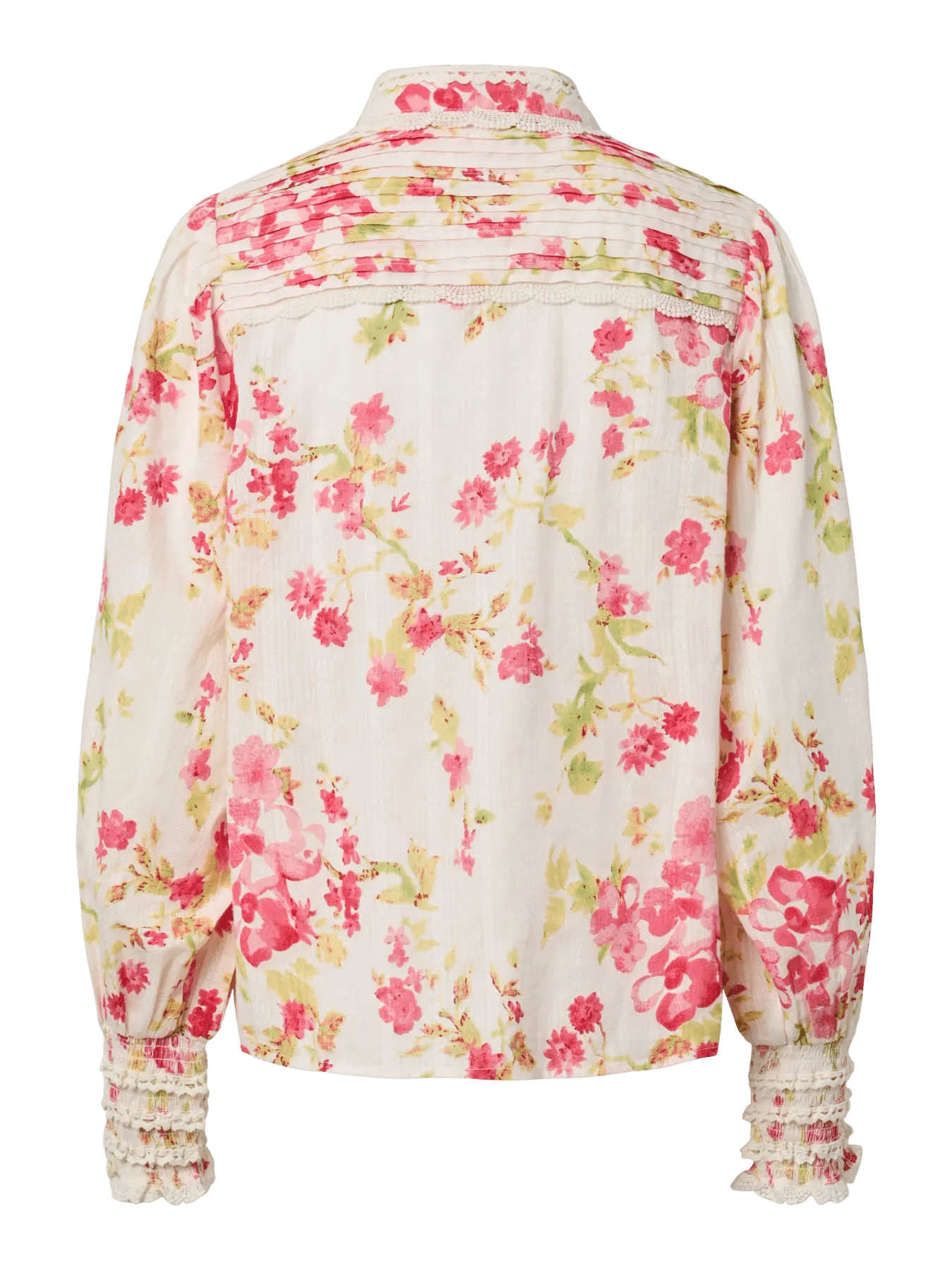 «Somelli Shirt» fra YAS. Nydelig sort skjorte med vakkert blomsterprint. Skjorten har krage, rund hals og ballongermer. Lukkes med knapper.
