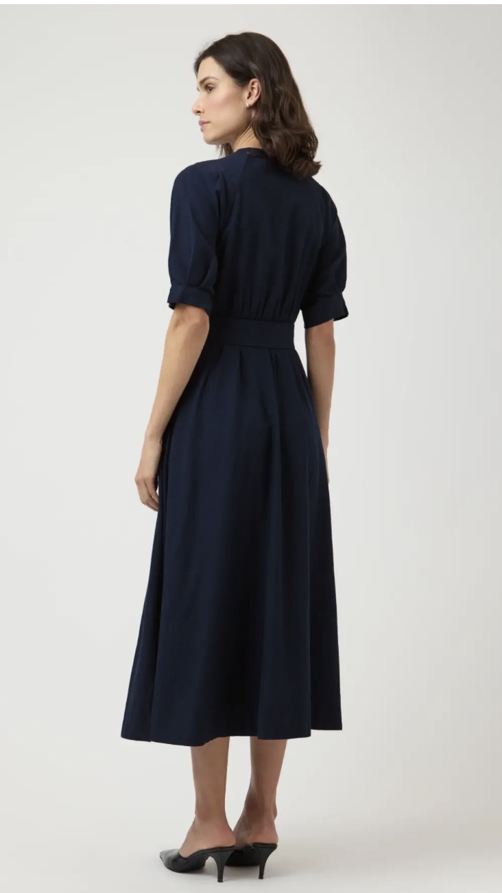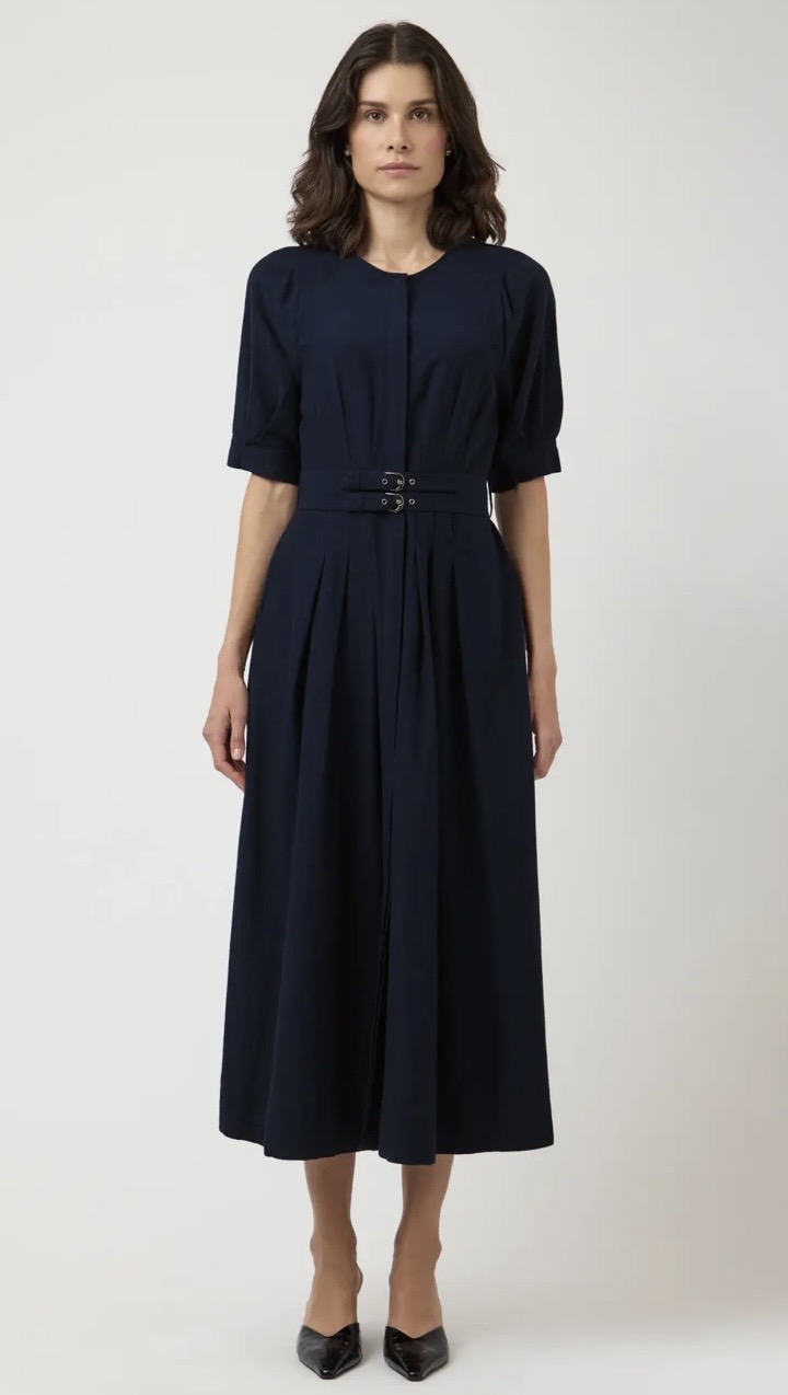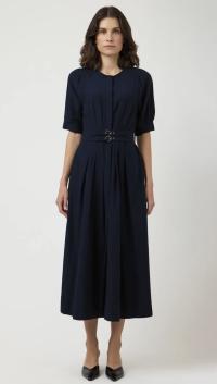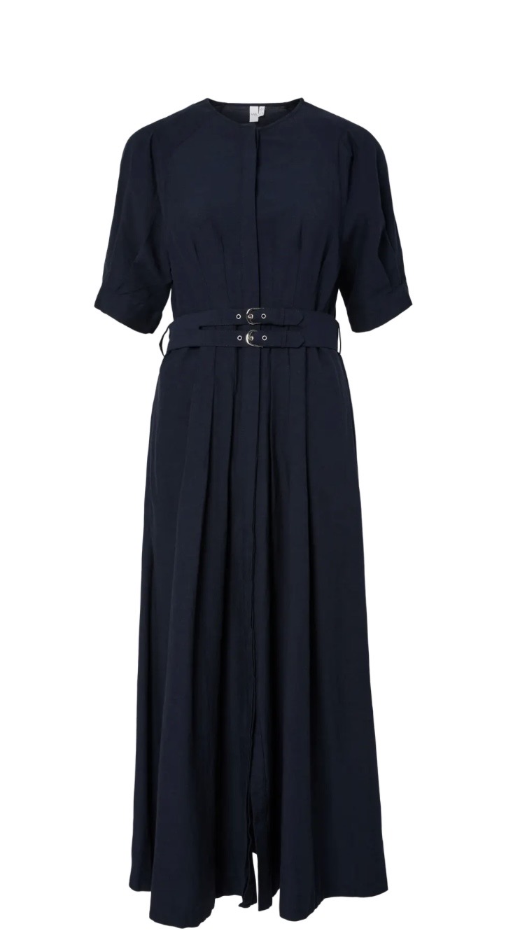 "Maruma 2/4 Long Dress" fra Yas. Lekker lang kjole i en nydelig blå farge. Kjolen har 2/4 ermer og rund hals. Det følger med to avtagbare belter med spennefesting. Videre faller kjolen i en nydelig a-fasong.
