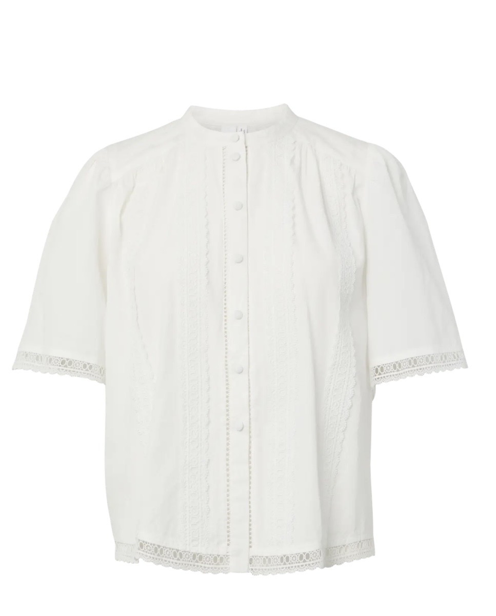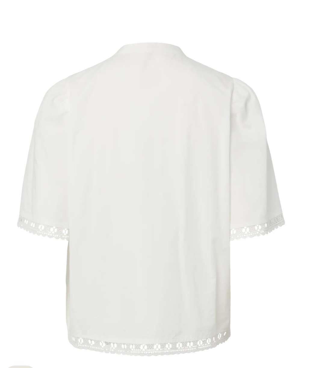 "Gunio 2/4 Shirt" fra YAS. Denne skjorten er et stilig og komfortabelt valg for enhver anledning. Den har et klassisk knappesettdesign med korte ermer og en avslappet passform. Skjorten er laget av myk og pustende bomull, noe som gjør den perfekt for varmt vær. Den fine blondedetaljen gir en touch av femininitet til designet.