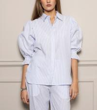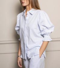 "Amy Shirt" har komfortabel bomullskvalitet og vakre feminine detaljer. Rysjer og strikk langs mansjettene, sammen med stilige puffermer, gjør den til et ypperlig valg å putte i et skjørt eller jeans. En komfortabel passform som er normal i størrelsen. Velg din vanlige størrelse.