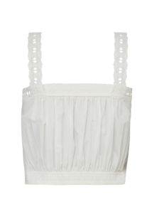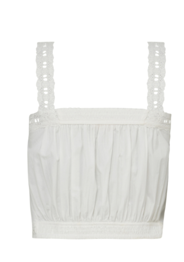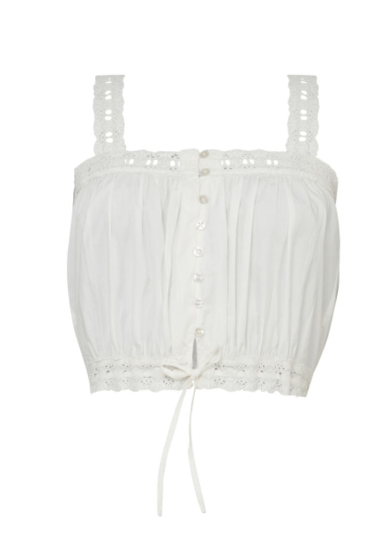 En nydelig blondetopp med snøring i livet og lett puffet passform