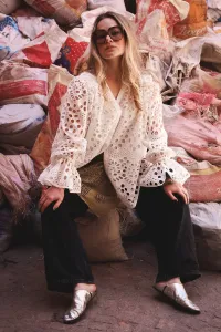 Designet i brodert anglaise-stoff med mykt volum og delikate rysjermer for en uanstrengt, feminin følelse.