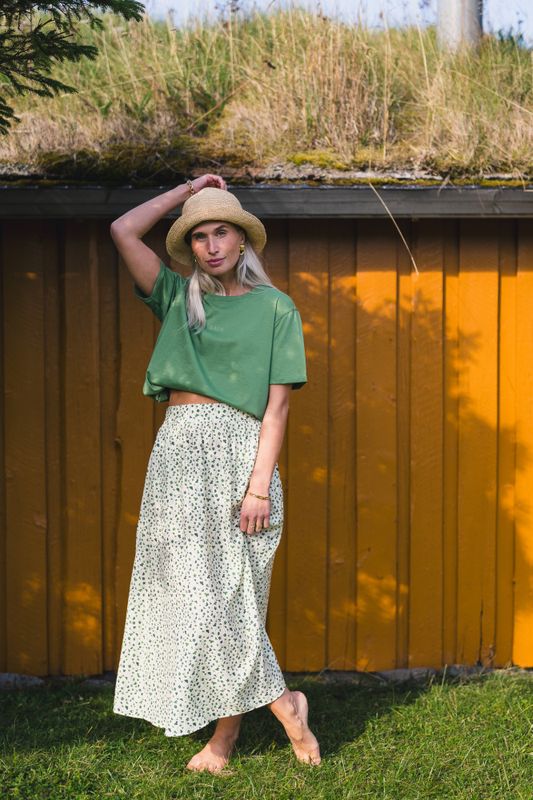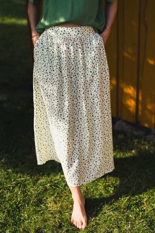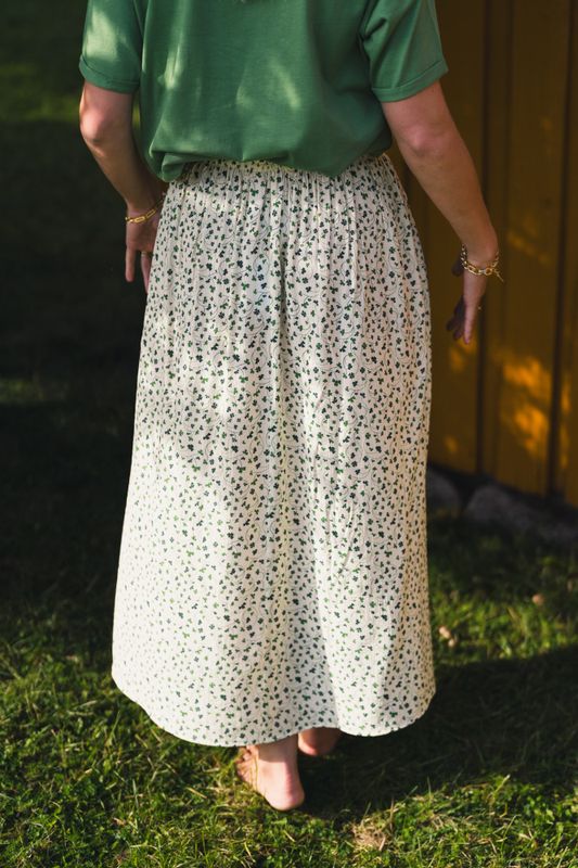 "Astrid Skirt" fra RAUS er det ultimate vår og sommerskjørtet fra Raus, og er et must-have i garderoben! Skjørtet har midi-lengde og det blå blomsterprintet vil være et herlig tilskudd til garderoben. Komfortabel passform med elastisk strikk i midjen som gir en behagelig og fleksibel passform. Kombiner skjørtet med en pen bluse eller til sesongens strikk.