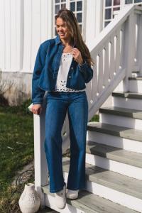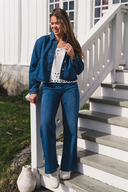 "Cecilie Pants" fra RAUS er en klassisk og tidløs denimjeans som raskt blir en favoritt i garderoben. Buksen kommer i en mørkeblå denimvask og er laget av myk bomull som føles behagelig på gjennom hele dagen. Den har en flatterende høy midje, fem lommer og beltehemper i linningen som gir et klassisk og gjennomført uttrykk. Cecilie HW Pants har rette ben med full lengde, noe som gir en moderne og stilren silhuett. Style den gjerne med matchende denimskjorte for et stilig denimsett, eller kombiner den med en strikkegenser eller enkel topp for en mer avslappet hverdagslook.