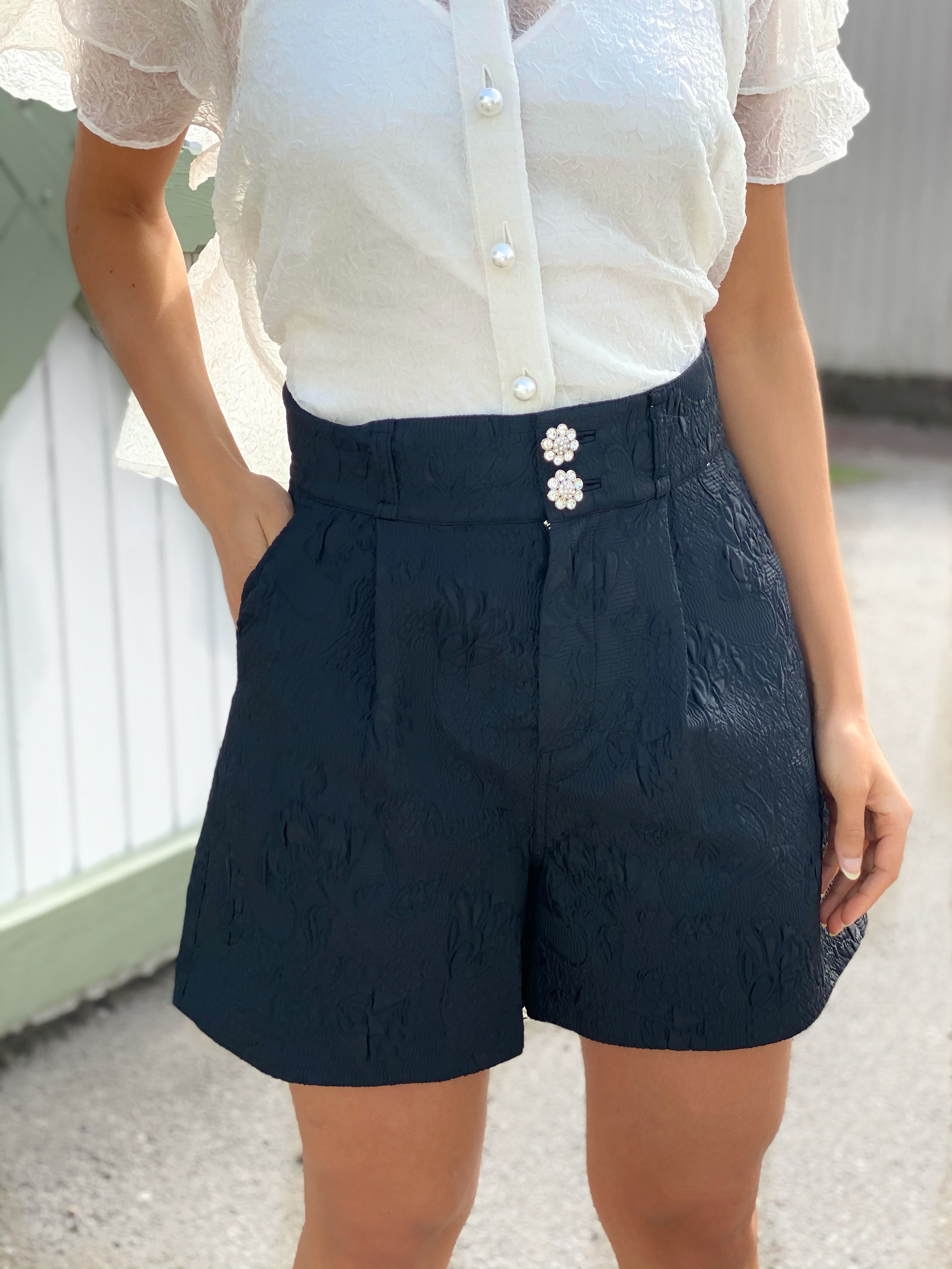 "Novelle BY NBS" fra CUSTOMMADE er en klassisk sort shorts med perfekt passform og i vevd stoff. Shortsen er høy på livet. Normal i størrelsen. Dette stykket er en del av den eksklusive samlingen i samlingen: By Numbers (med et unikt designnummer i stykket).