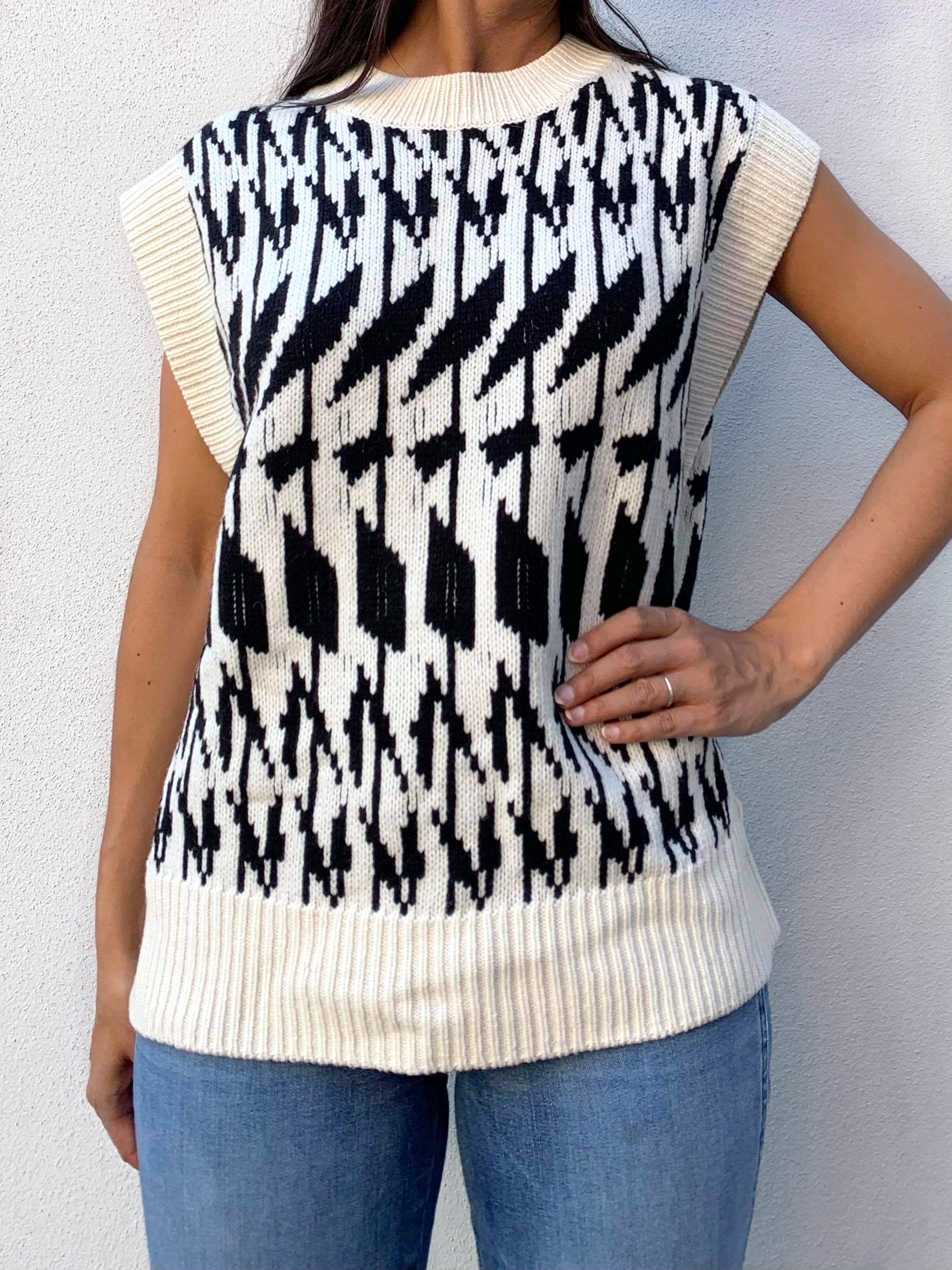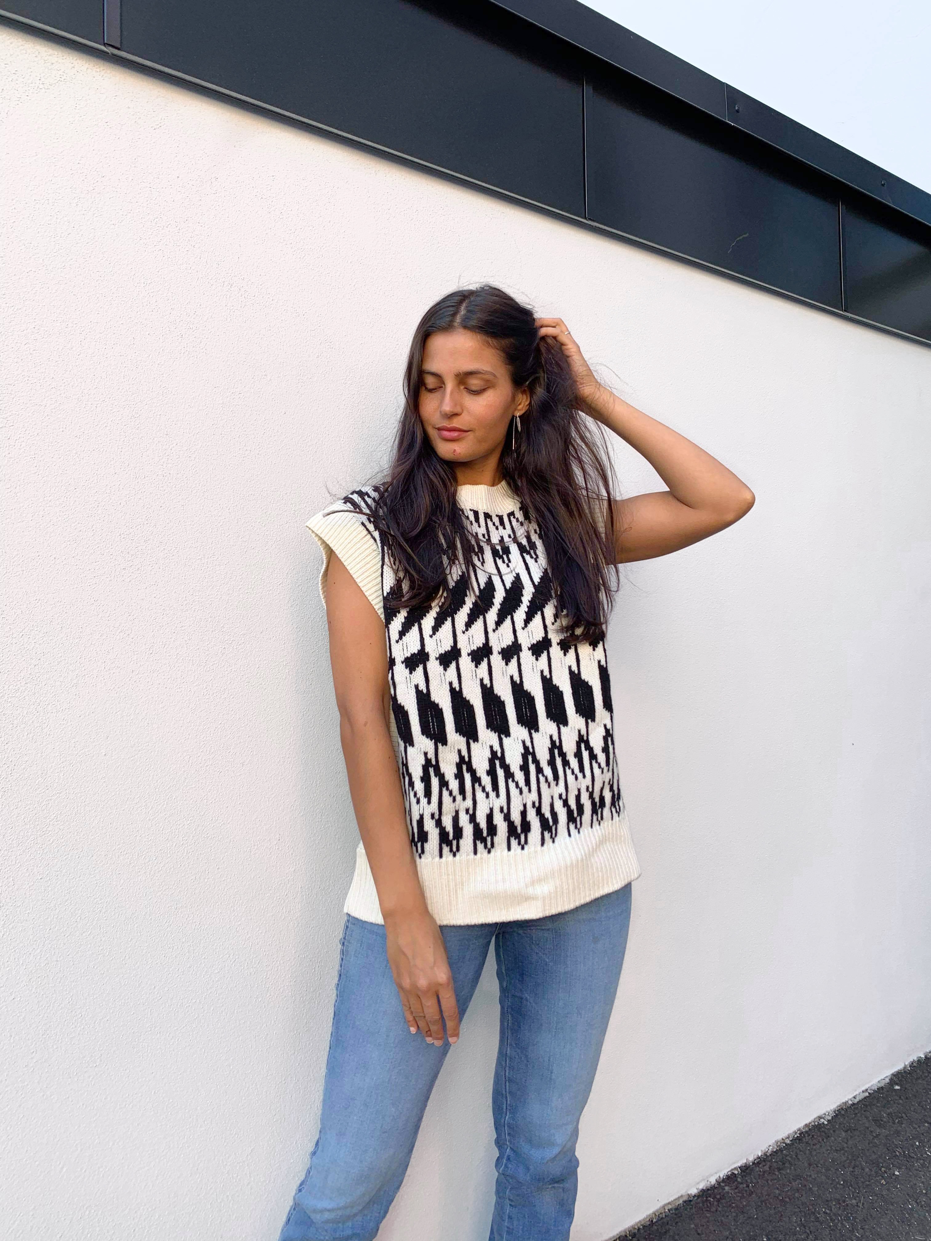 «Sawyer vest FR» fra det norske merke Iben er en nydelig strikket vest i kult mønster. Vesten har rund hals. Normal i størrelsen.