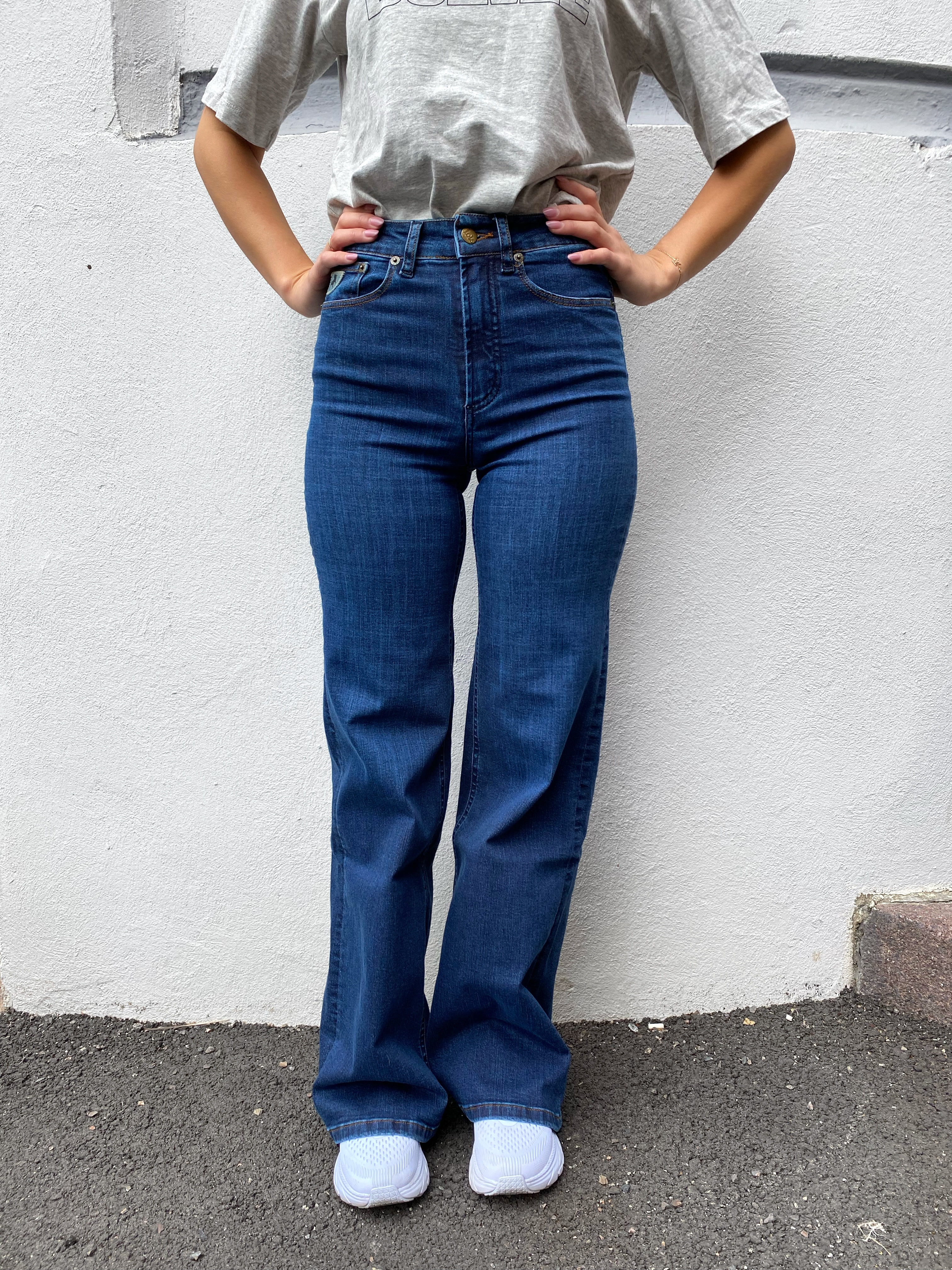 Denne jeansmodellen har høyt liv, god stretch og vide bein.