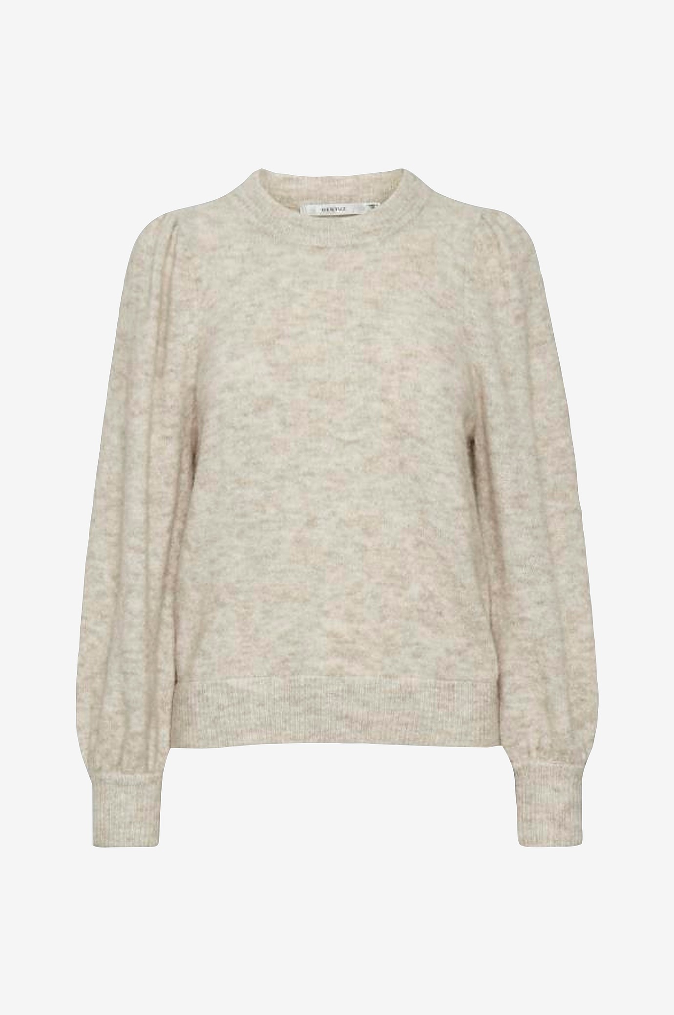 «Alpha pullover» fra Gestuz er en nydelig genser i lekker beige farge. Genseren har rund hals og lang erm med puffeffekt. Normal i størrelsen.