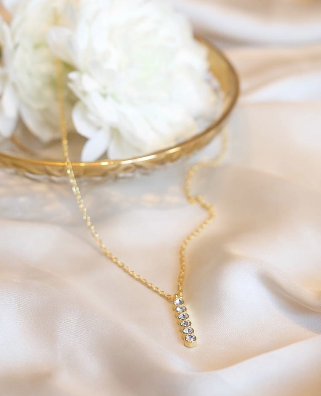 «Crystal row kjede» fra det norske merke Secrets By B. Elegant kjede med anheng som er en rad med swarovski stener.