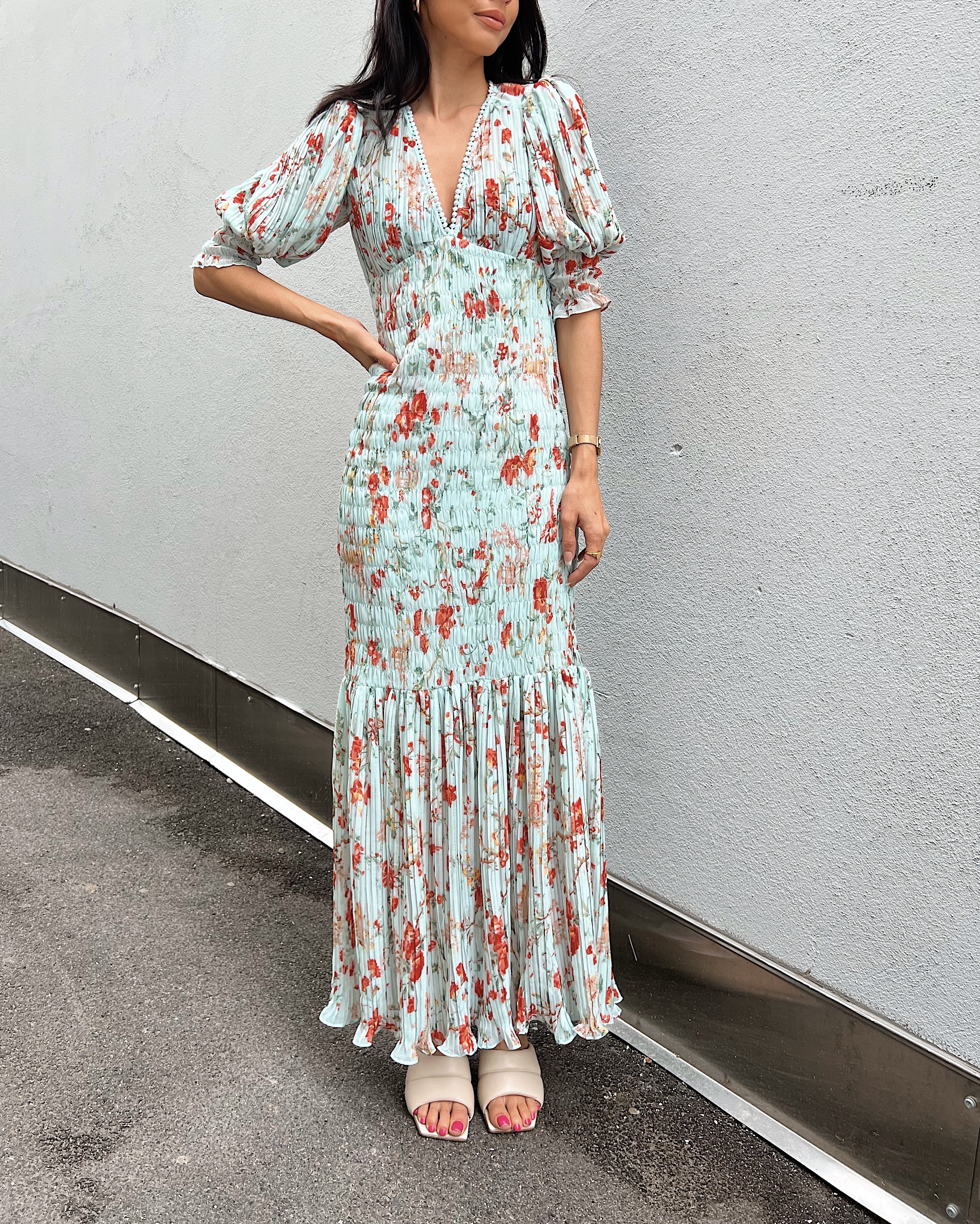 Plisse Maxi Dress - Rose Garden