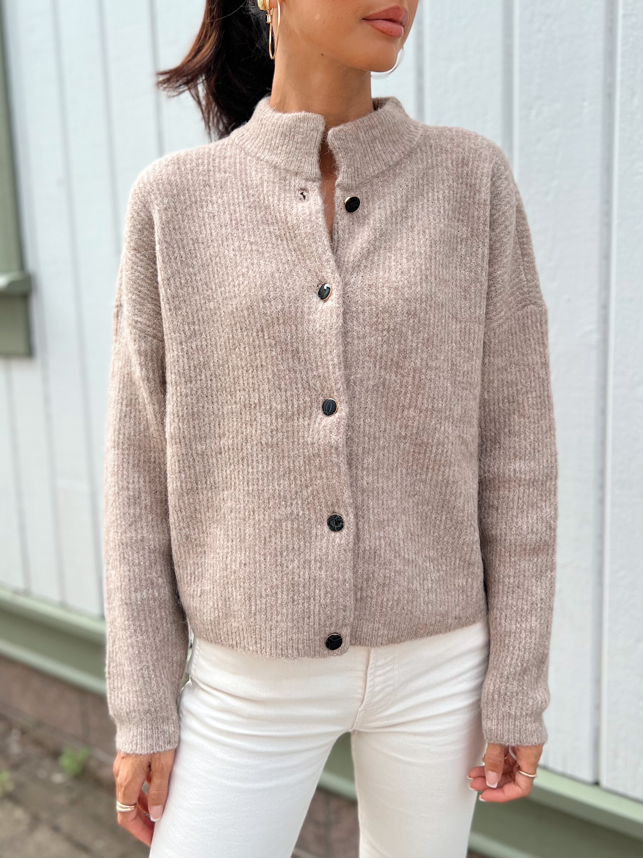 «Alpha short cardigan» fra Gestuz er en nydelig kort cardigan med lekre knepping foran. Loose fit. Normal i størrelsen.