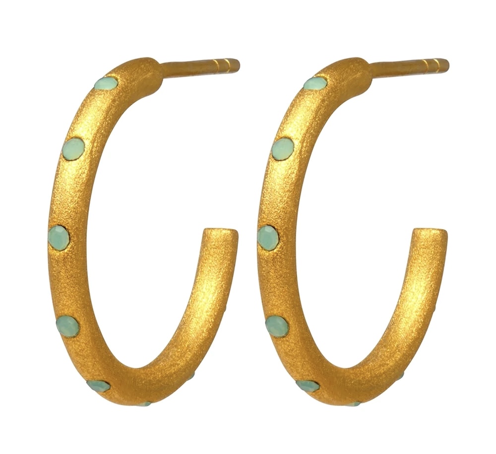 «Omg hoops medium Pair» fra Lulu Copenhagen. Lekre øredobber med steinene har en opal effekt som toner ned bling-bling-delen.