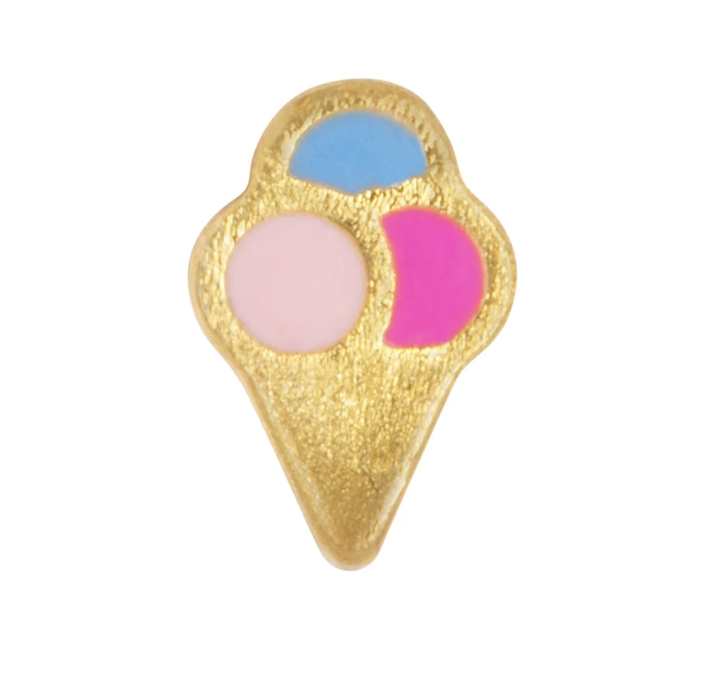Materiale: Gullbelagt messing, 50 % resirkulert, 18K, e-belegg, emalje