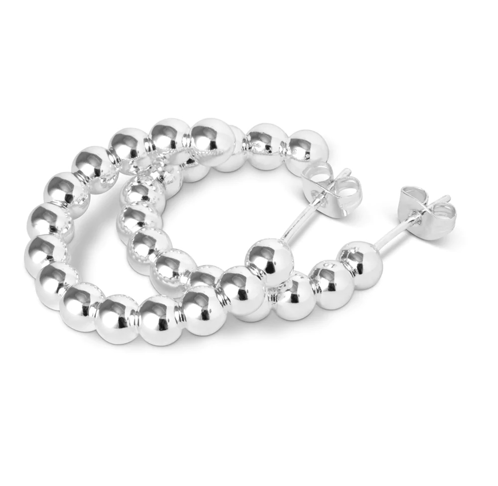 Color Ball Hoops - Large Pair Silver Plated