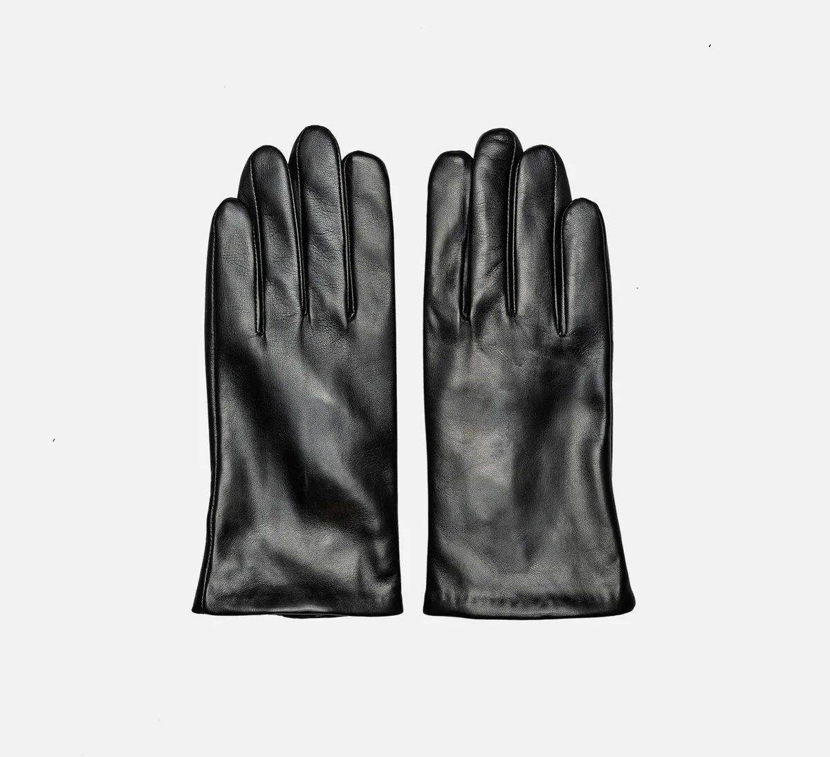 «Stacey plain» fra Re: Designed by Dixie. Klassisk, og enkel skinnhanske, med en elastisk detalj på baksiden for bedre passform.